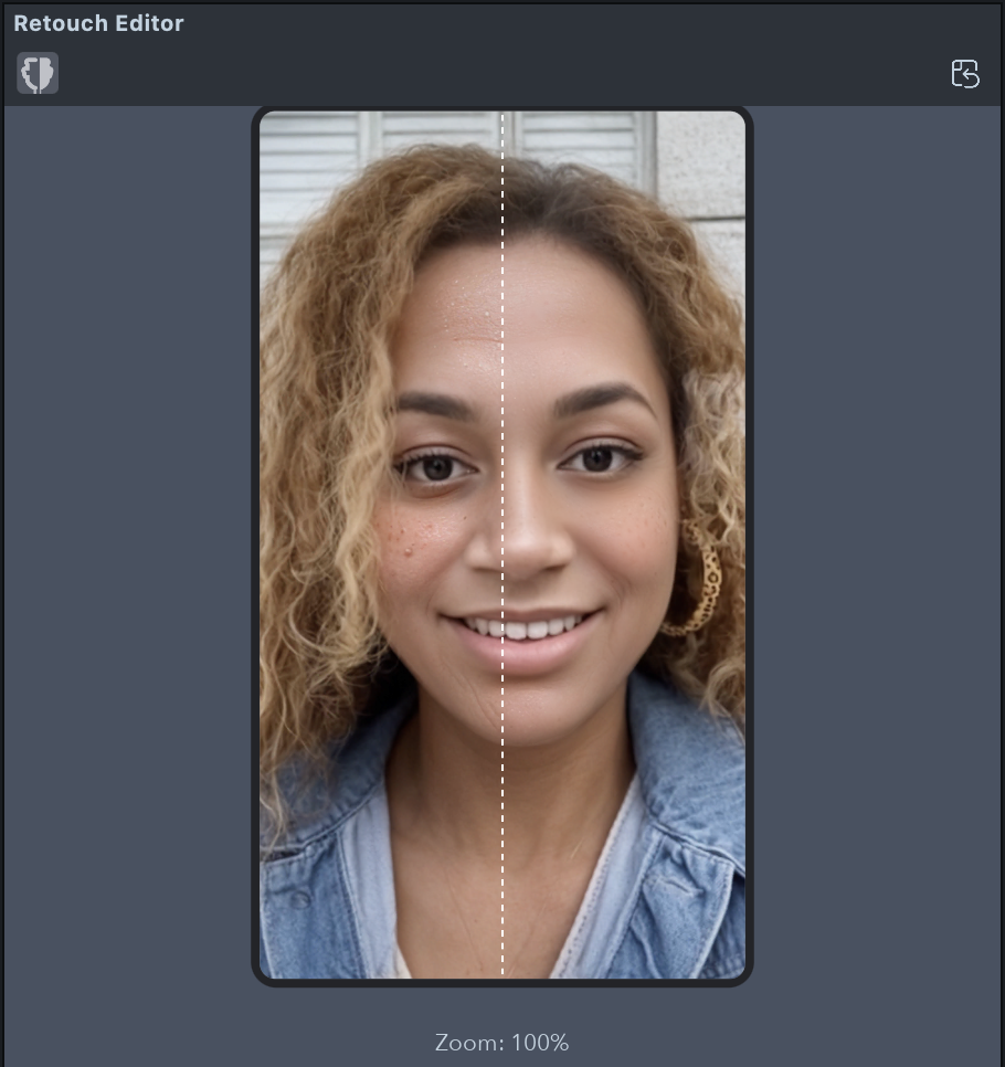 Double-clicking the Face Retouch object automatically opens the Retouch Editor panel to visualize the retouch effect.