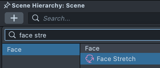 To create a Face Stretch object, first click the + button in the Scene Hierarchy panel. Then, select Face Stretch.