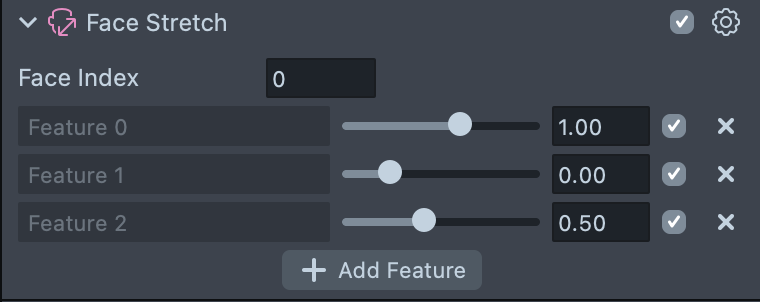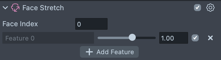 Each Face Stretch component allows you to have one or more features. You can press the + button in the top left toolbar, or press the + Add Feature in the Face Stretch component in the Inspector panel.