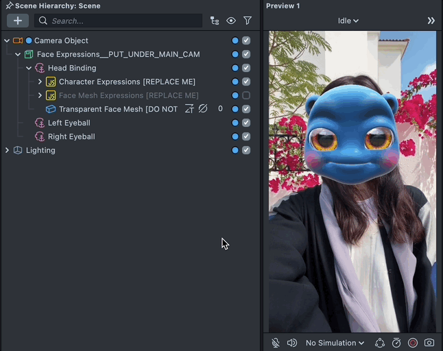 This guide shows how you can use face expressions of the user to drive a 3D model using the Face Expressions effect. For example, you can bring in a 3D character that repeats the user's face expressions!