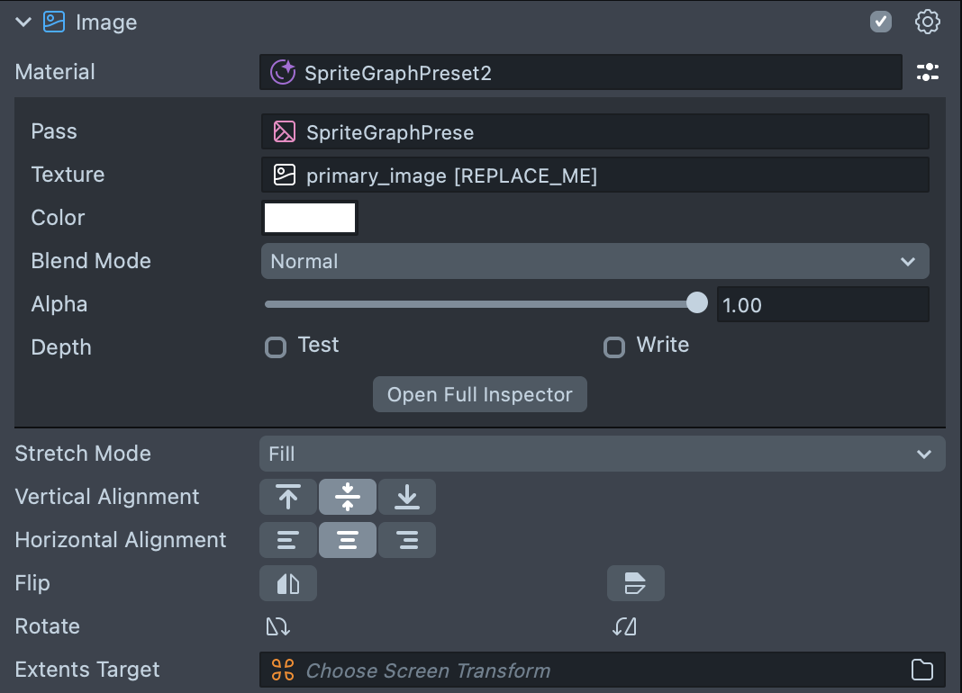 Next you will need to assign your artwork to the Screen Image object. Locate the object named Billboard [EDIT_ME] in the Scene Hierarchy panel and assign your texture to the Texture field of the Image component. It is recommended that you keep the Screen Image in Fill mode so that it fills the entire screen.