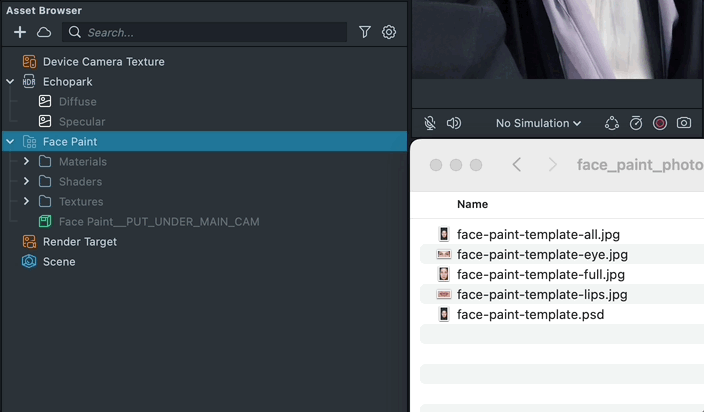 Once you've exported your texture(s), you can add them to Lens Studio by dragging and dropping them into the Asset Browser panel.