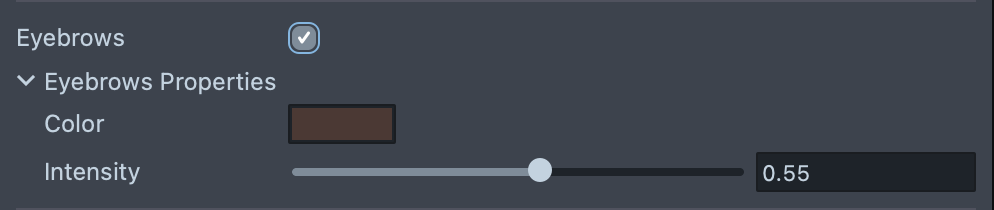 Similarly, try modifying the color and intensity of the Eyebrows as before.