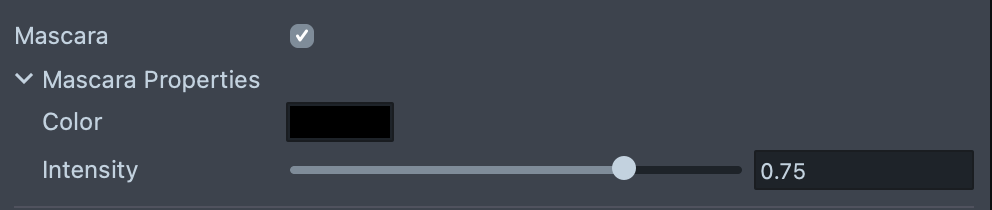Like the previous effects, you can enable or disable the Mascara effect, as well as change its color and intensity.