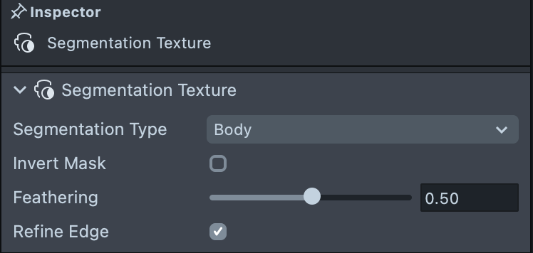 To modify what part of the image is segmented, modify the Segmentation Texture resource by checking the Advanced option. Click on the Segmentation Texture field and click on the plus buttion to create a new Segmentation Texutre. Choose Segmentation Texutre in the Asset Browser, and modify the options in the Inspector Panel.