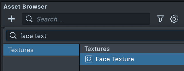 To create a Face Texture resource, first click the + button in the Asset Browser panel. Then, select Face Texture.