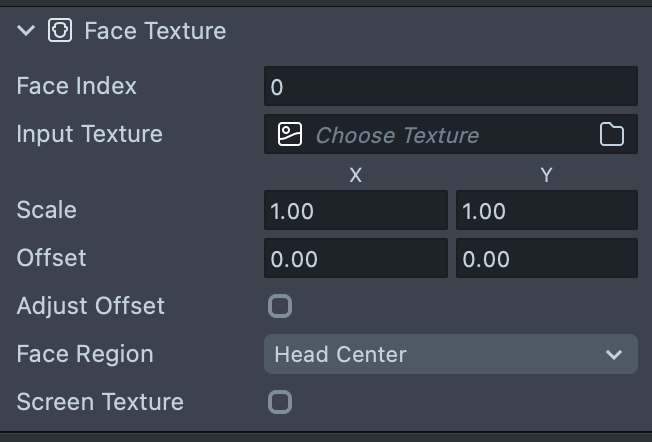Offsetshould be applied. - Face Region: The area of the face this texture is centered to.