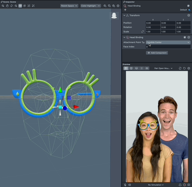 You can attach 3D Objects to your head so that they track to a point on your head. This is great for adding accessories such as glasses, headwear and other 3D models.