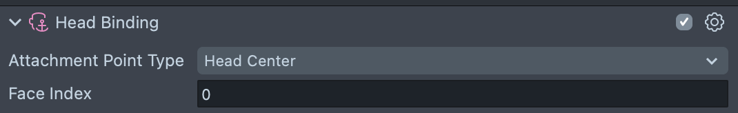 You can modify which part of the face the Head Binding is attached to by changing the Attachment Point Type. Refer to the Head Binding Settings section below for more information.