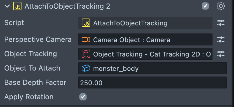 - Base Depth Factor: Tune the starting depth for the attached object. The depth is then scaled based on the size of the Object Tracking bounding box