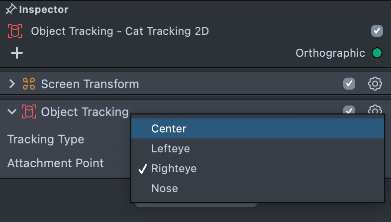 - Object Tracking: Set this to the Object Tracking object you want to attach your content to