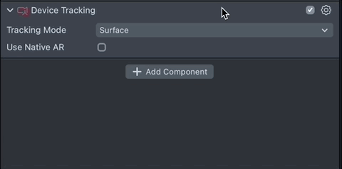 With the object you want to be the tracking target selected, in the Inspector panel, press + Add Component, and select the script you just created (e.g. SetSurfaceTrackingTarget). This object will now be the device tracker's target.