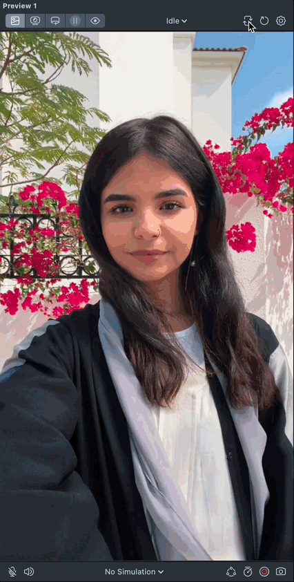 In the Preview Panel, click on the Switch To Back camera button to switch to world side preview.