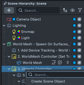 Follow the instructions and drag the prefab World Mesh - Spawn On Surfaces__PLACE_IN_SCENE into Scene Hierarchy to create a new Scene Object.