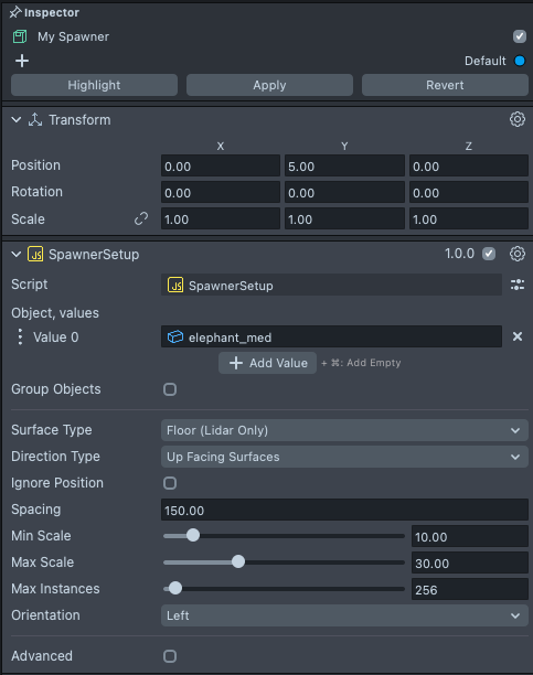The Spawner Setup script contains several options to configure how you want your objects to be spawned.