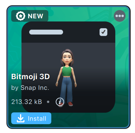 The Bitmoji 3D custom component is available in LS Asset Library. Press install or Update and then add it to the Asset Browser panel by clicking the + button and looking up Bitmoji 3D.