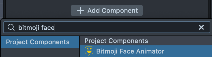 To add component to scene select the scene object and press Add Component button in the Inspector panel. Please make sure to add this component to the same scene object your Bitmoji 3D component is attached no matter the order.