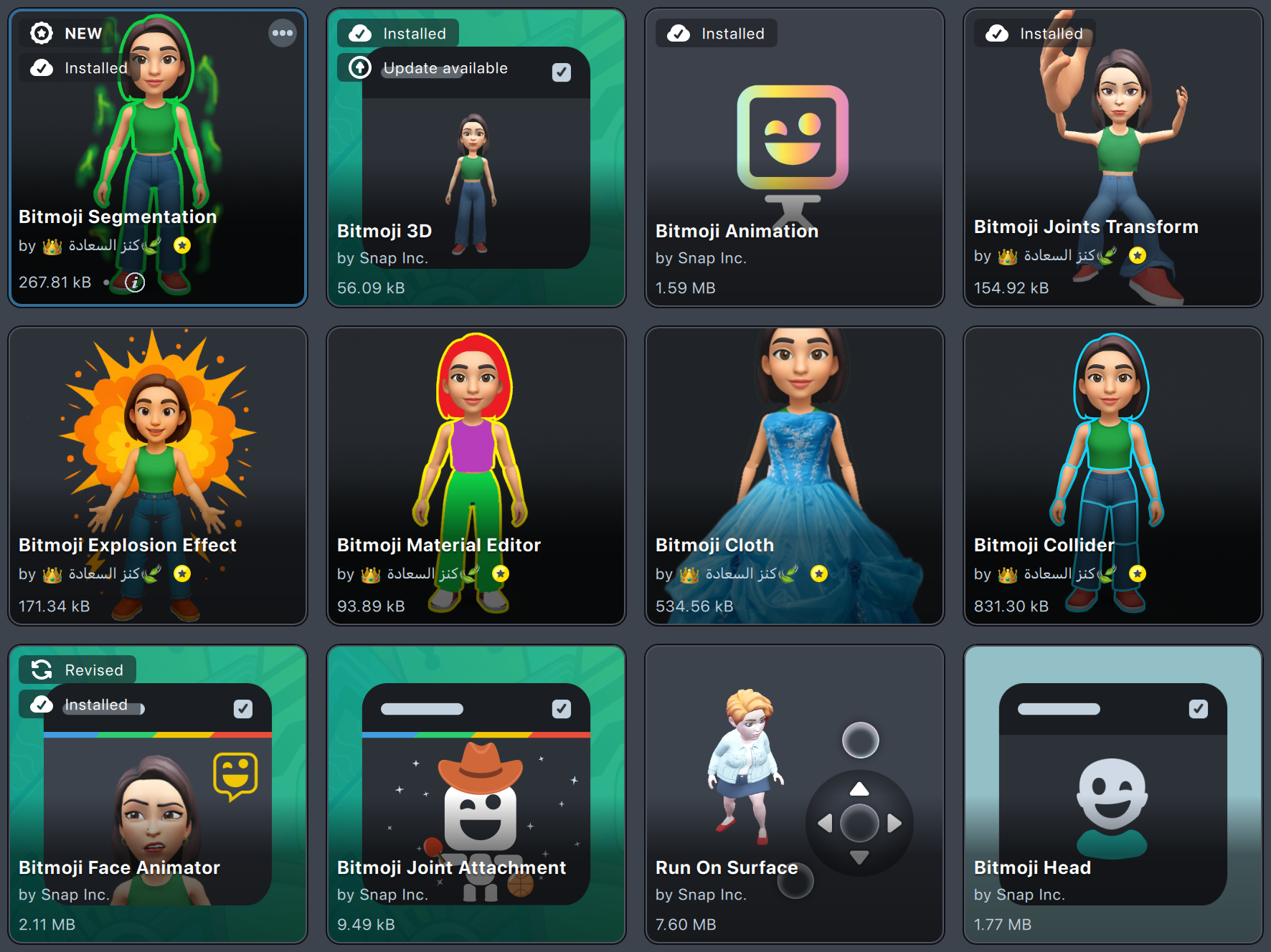 Here’s a quick look at the various Bitmoji-related features available in Lens Studio: