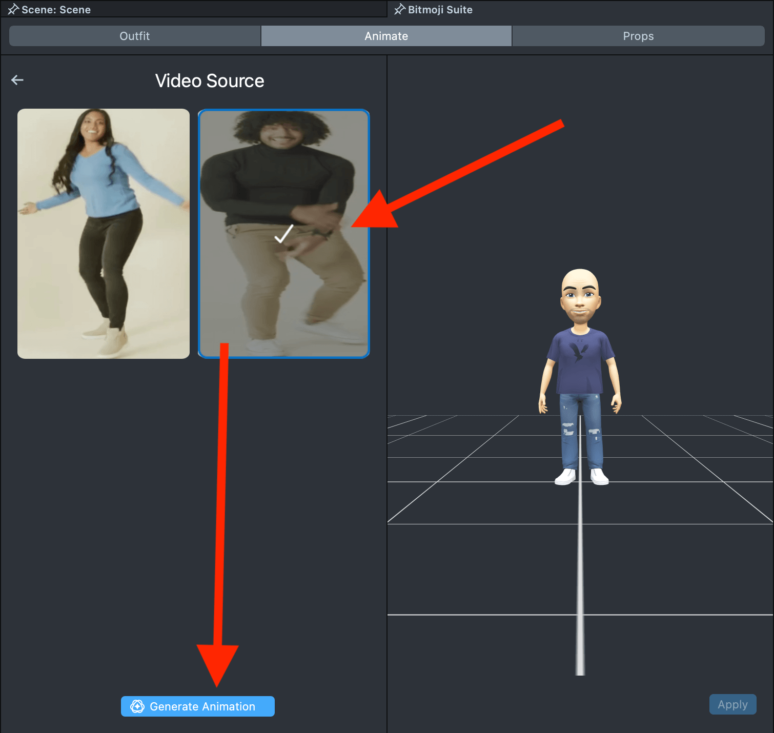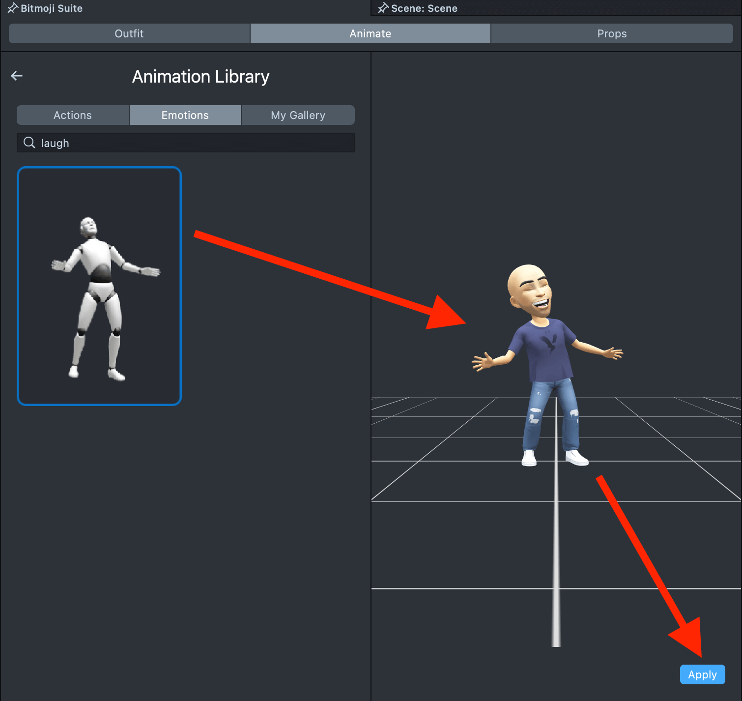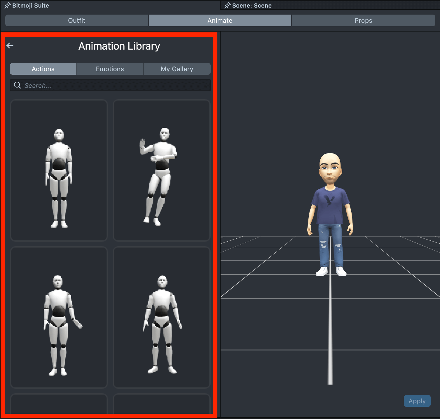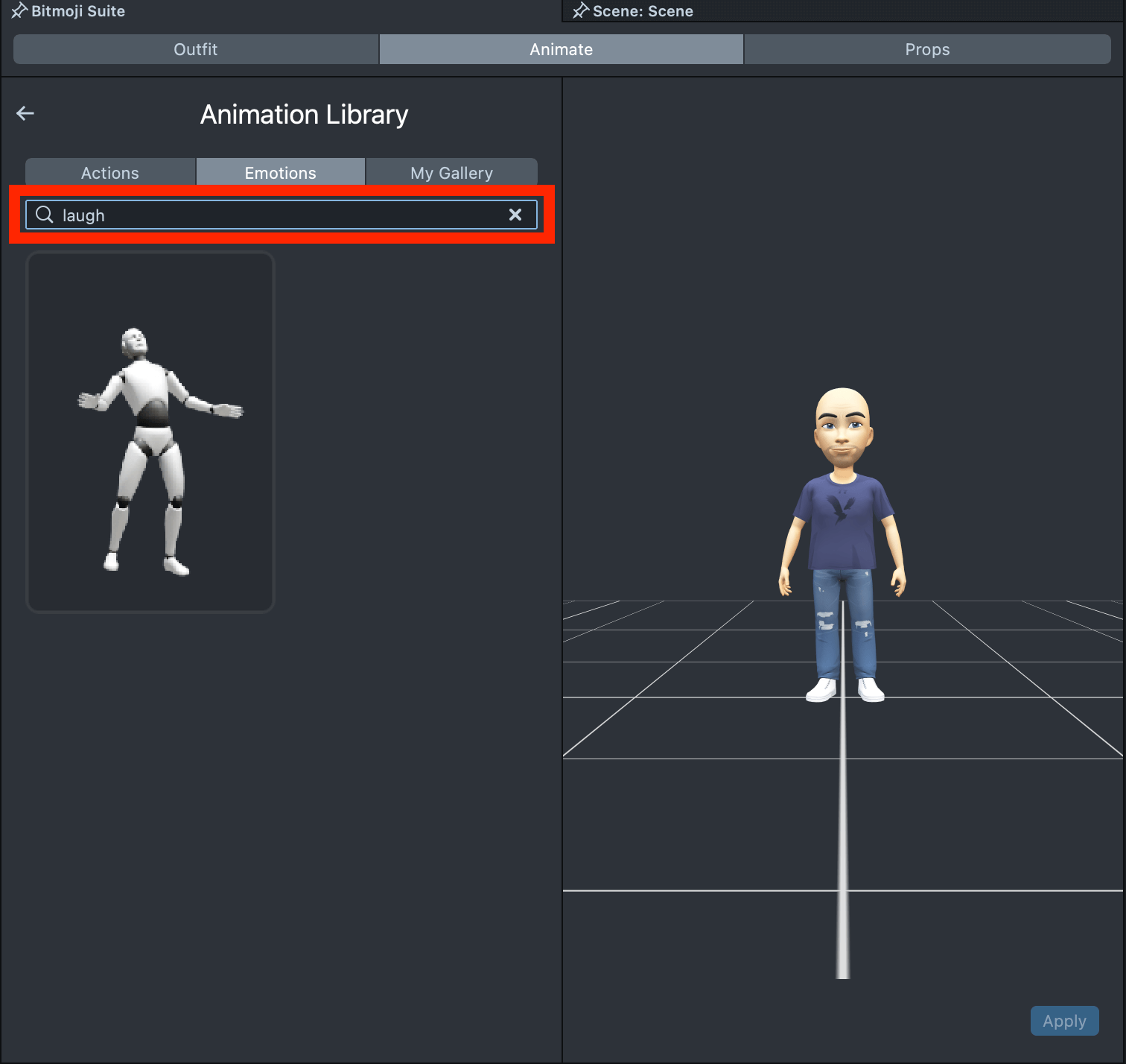 Once you’ve selected an animation, click the Apply button to apply it to your Bitmoji.