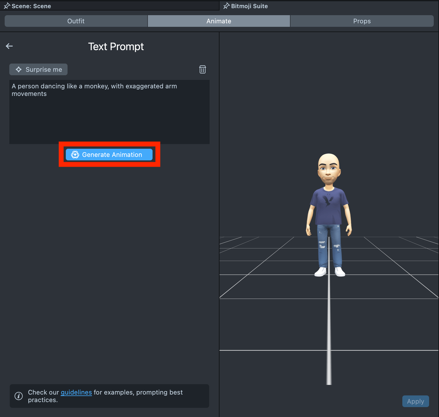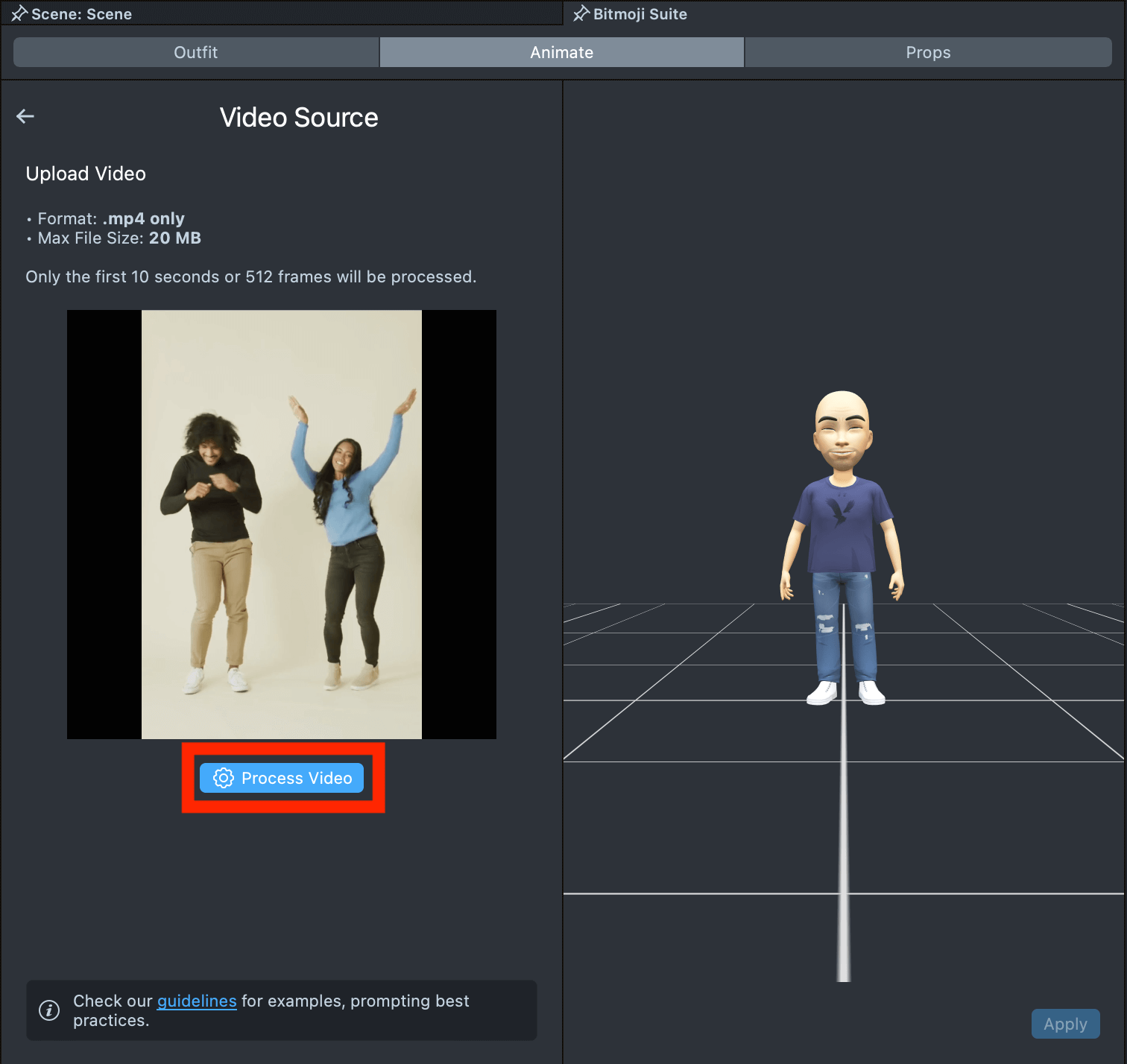 Visit Animating Bitmoji 3D to learn how to animate Bitmoji using other tools and how to apply them.