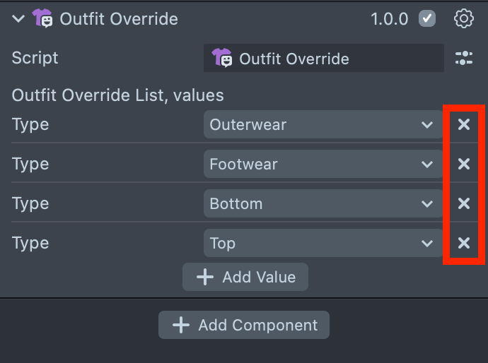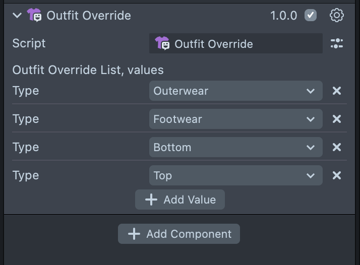 You can use the Outfit Override component to easily transfer your custom Outfit from one Bitmoji to another. This component is created automatically when you create a custom Outfit and click the Apply button. You can find it in the Inspector panel. Just copy and paste the component to do so.