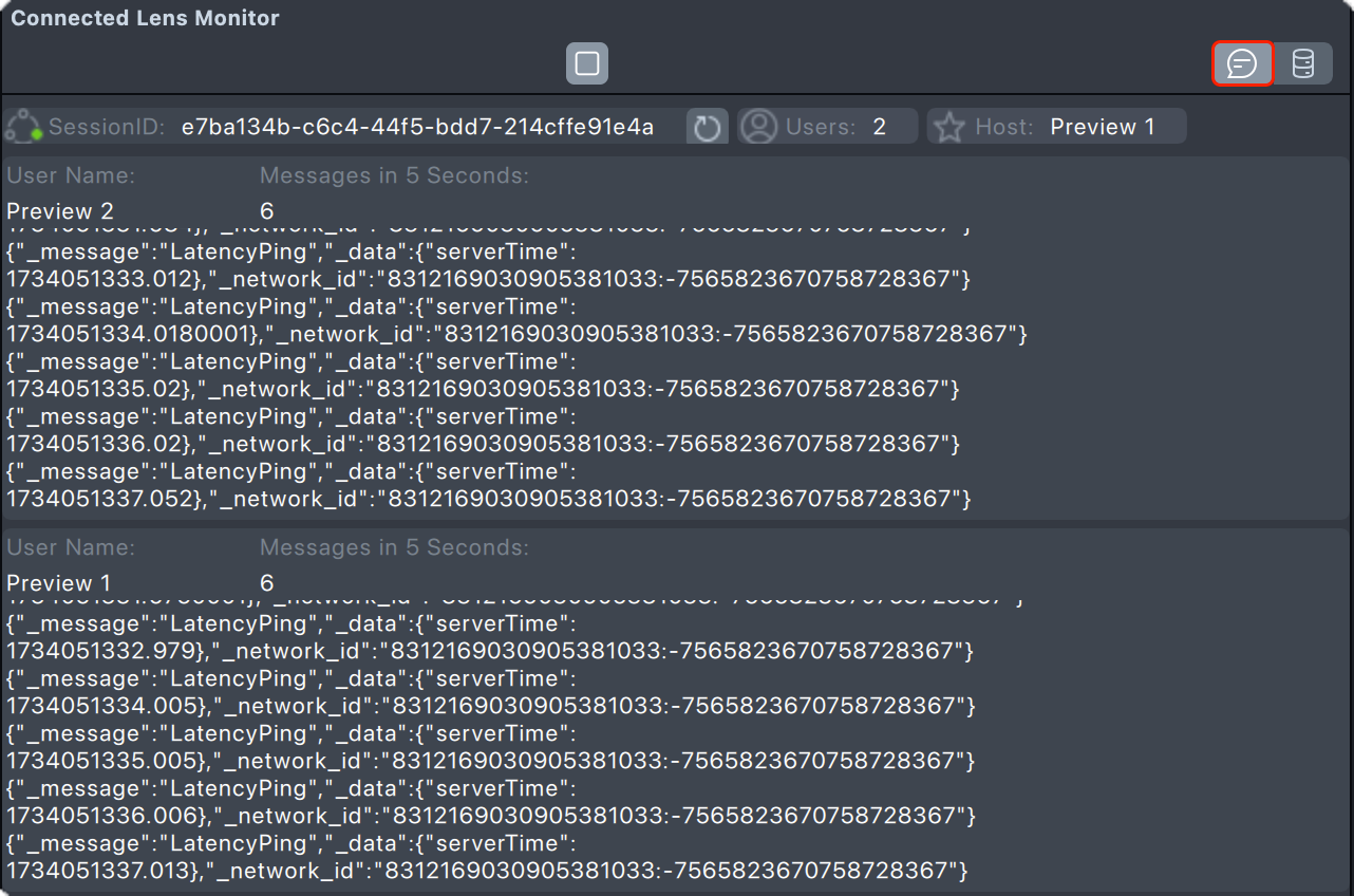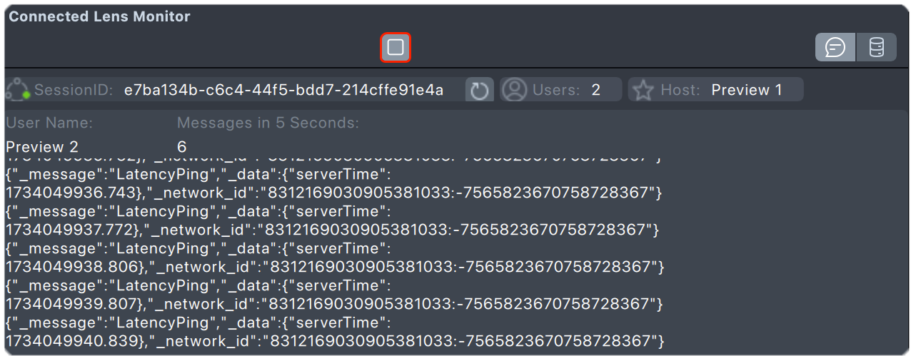 With Connected Lenses Monitor, you can view users, messages, and real-time stores information in Connected Lens Sessions.