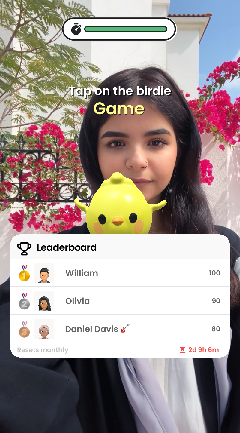 Leaderboard custom component is an all-in-one, UI-powered solution for adding social competition to your game. It enables real-time score tracking, Bitmoji driven visual ranking, and customizable UI states like the Score Widget and Side Switcher — all designed to feel native to the Snapchat experience.