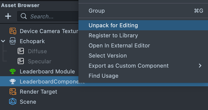 Once you click the Install button, you can find this component in the Asset Browser and add it to your resources to build the Lens.