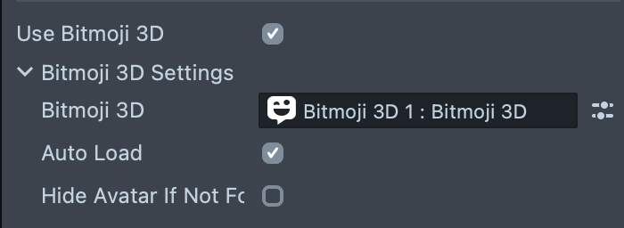 Auto Load can be enabled to automatically load the Bitmoji 3D avatar when the component is initialized. If you want to manually control when the avatar is loaded, you can disable this option and manually load it through the component's scripting API instead.