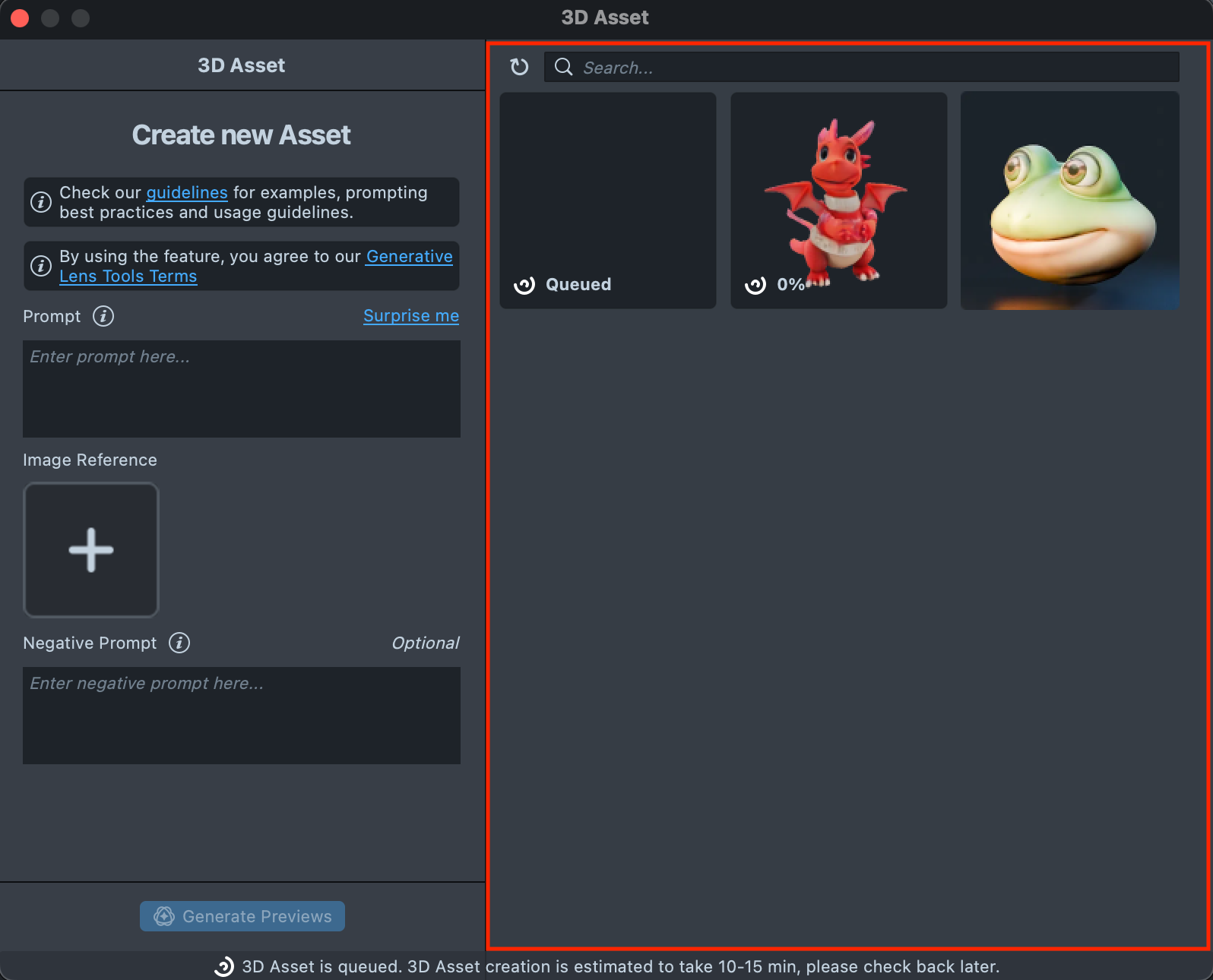 3D Asset Generation is a tool for generating and customizing 3D assets for creating Lenses. This guide will walk you through all the features and provide tips and hacks for getting the most out of your 3D assets creations.