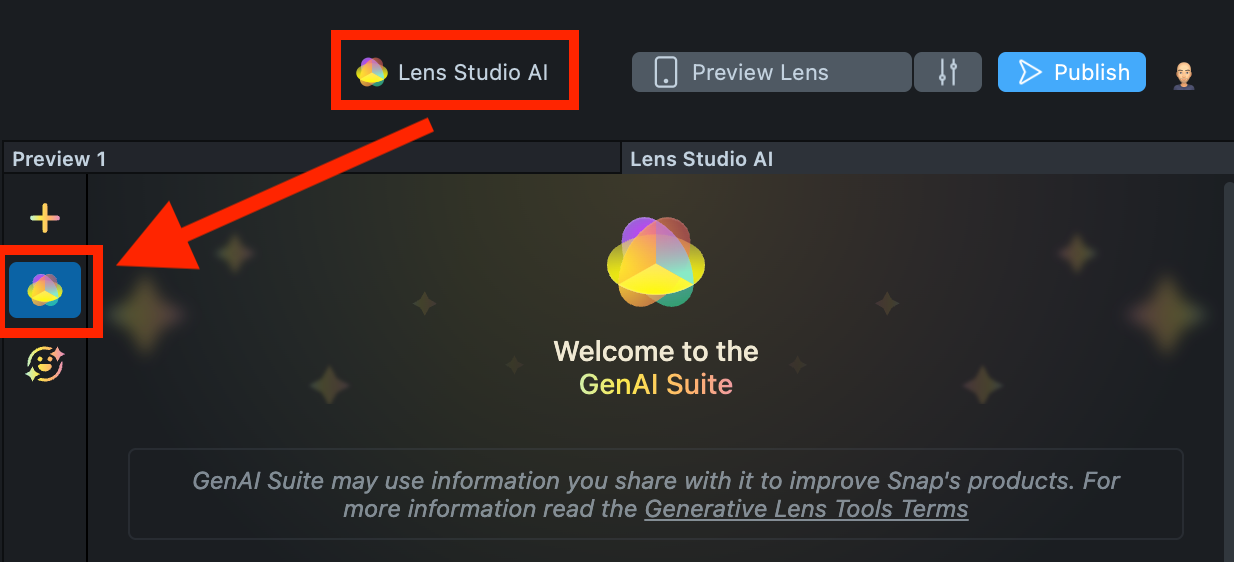 GenAI Home Pageusing theLens Studio AIoption in the top right corner of the Lens Studio.