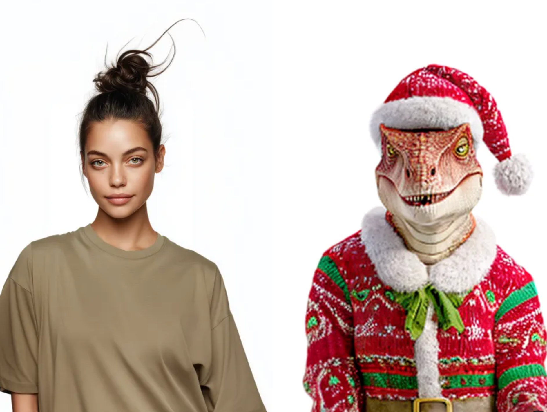 Lighting is also transferred. In the example below, side lighting from the reference image is reflected in the generated ML model.