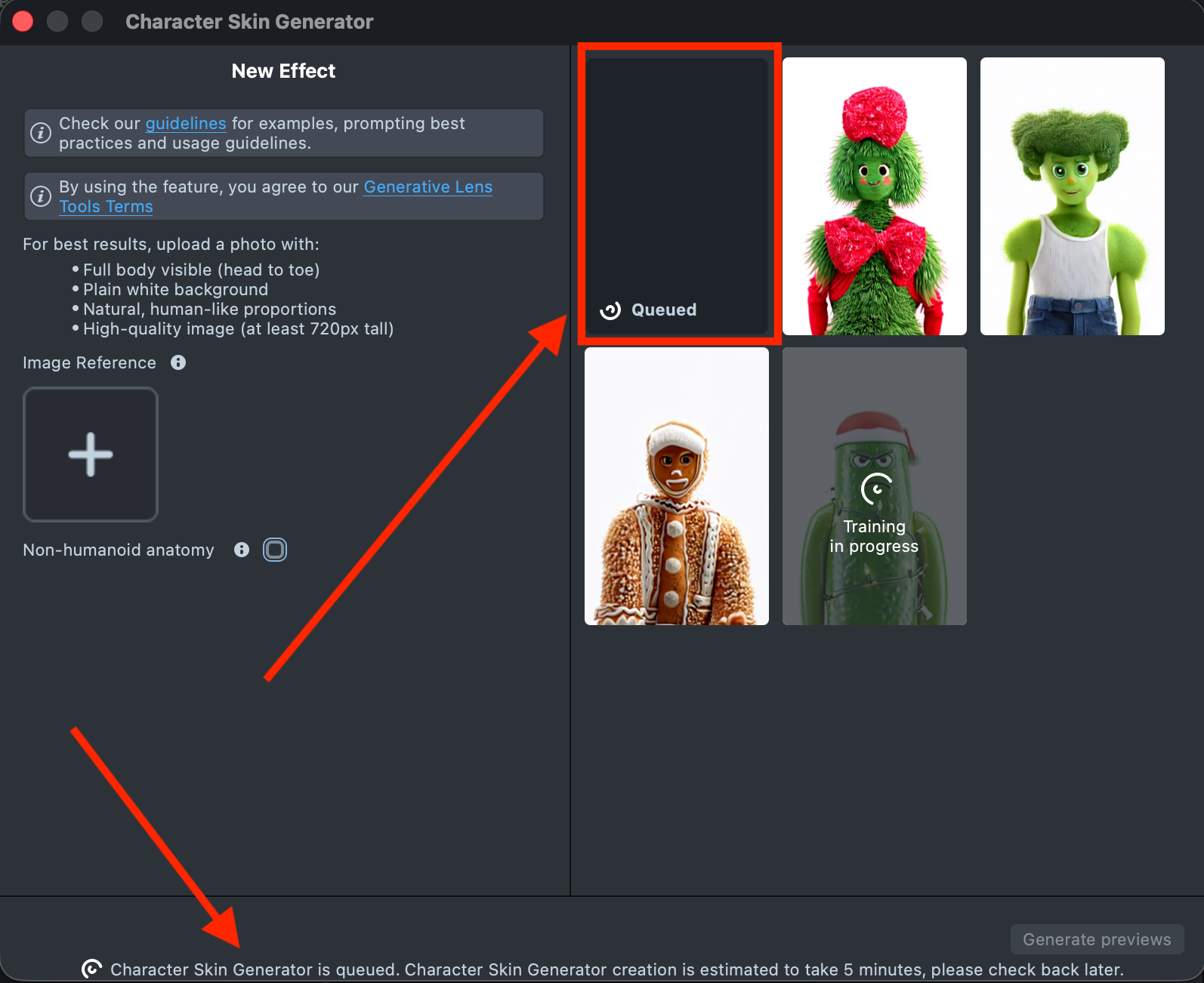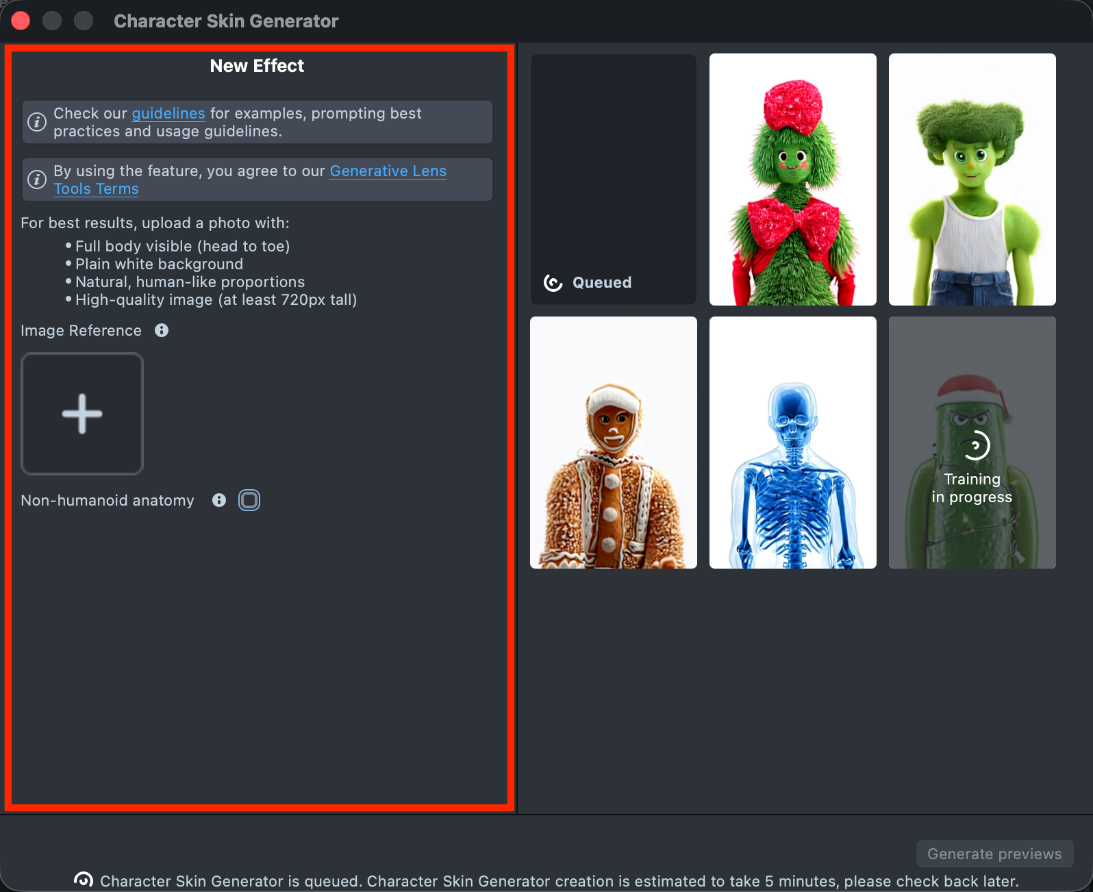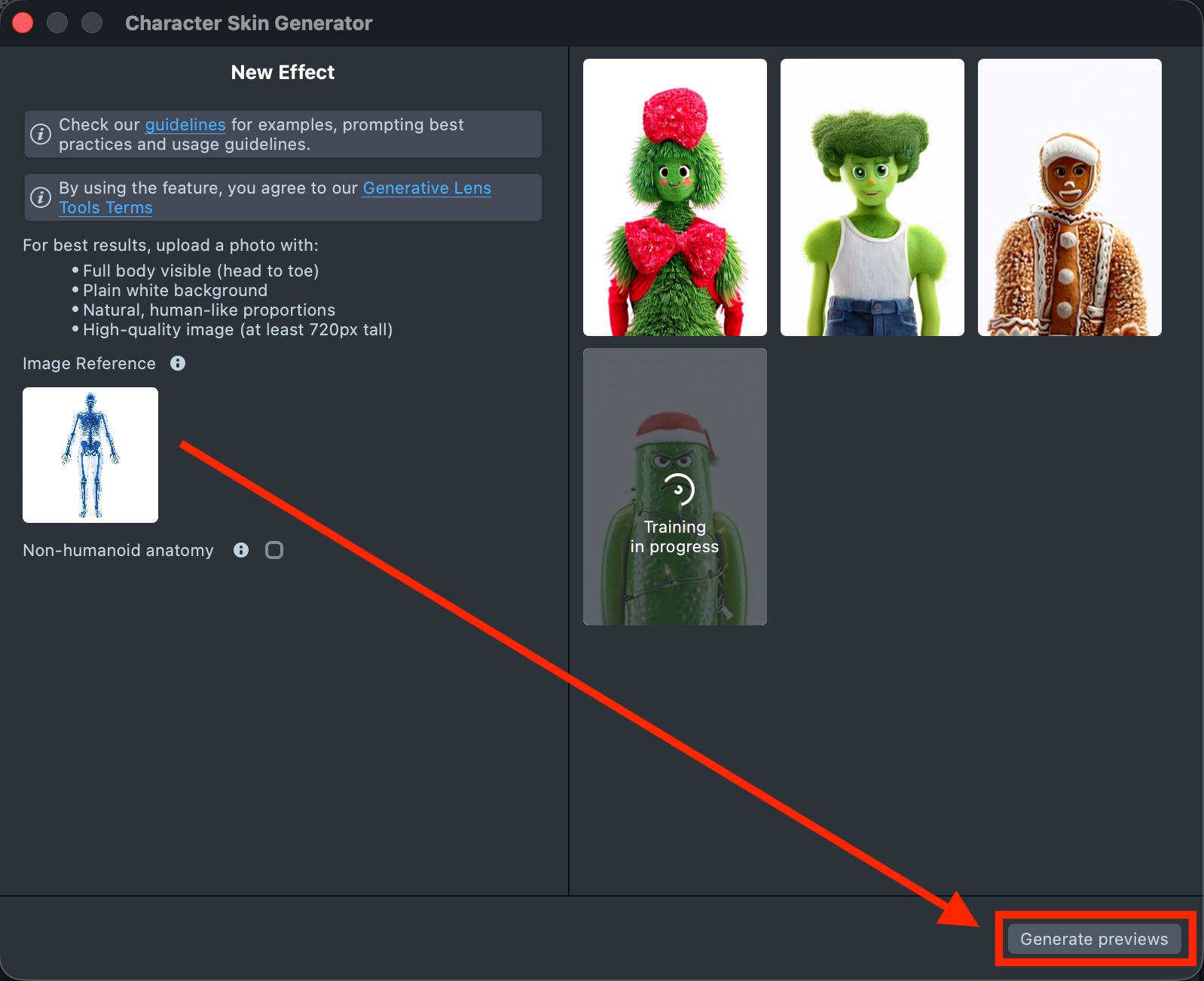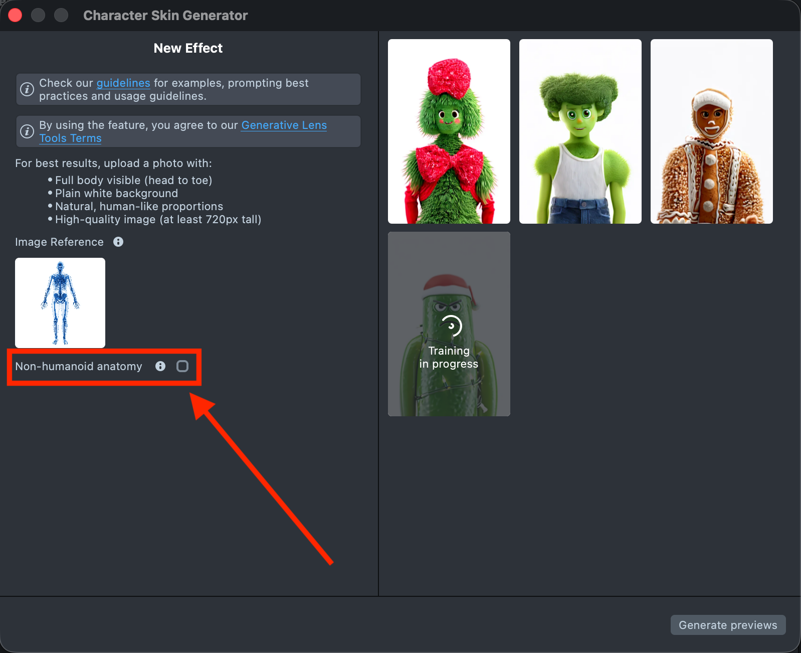 Non-humanoid anatomycheckbox if your reference image shows a character or object without a human-like body structure (for example, a banana, cactus, snowman, or other non-humanoid shapes).