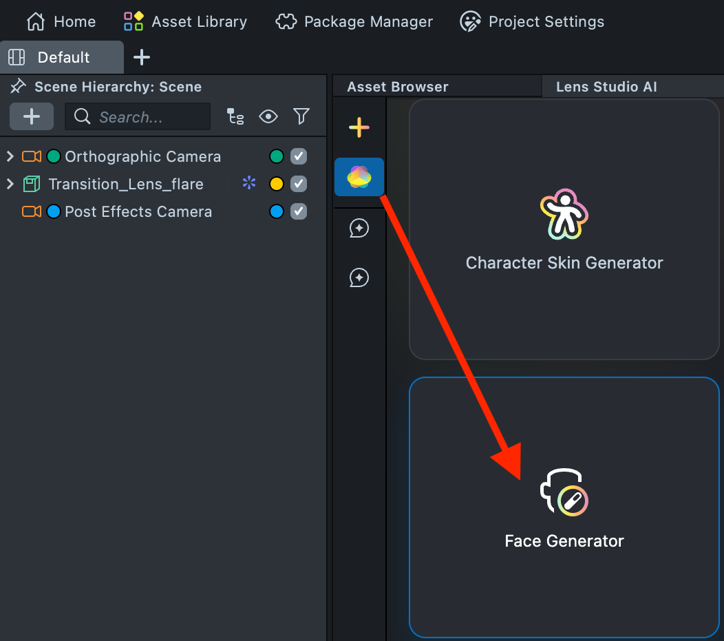 4.1. Next, we’ll add the component from Lens Studio’s Face Generator plugin.