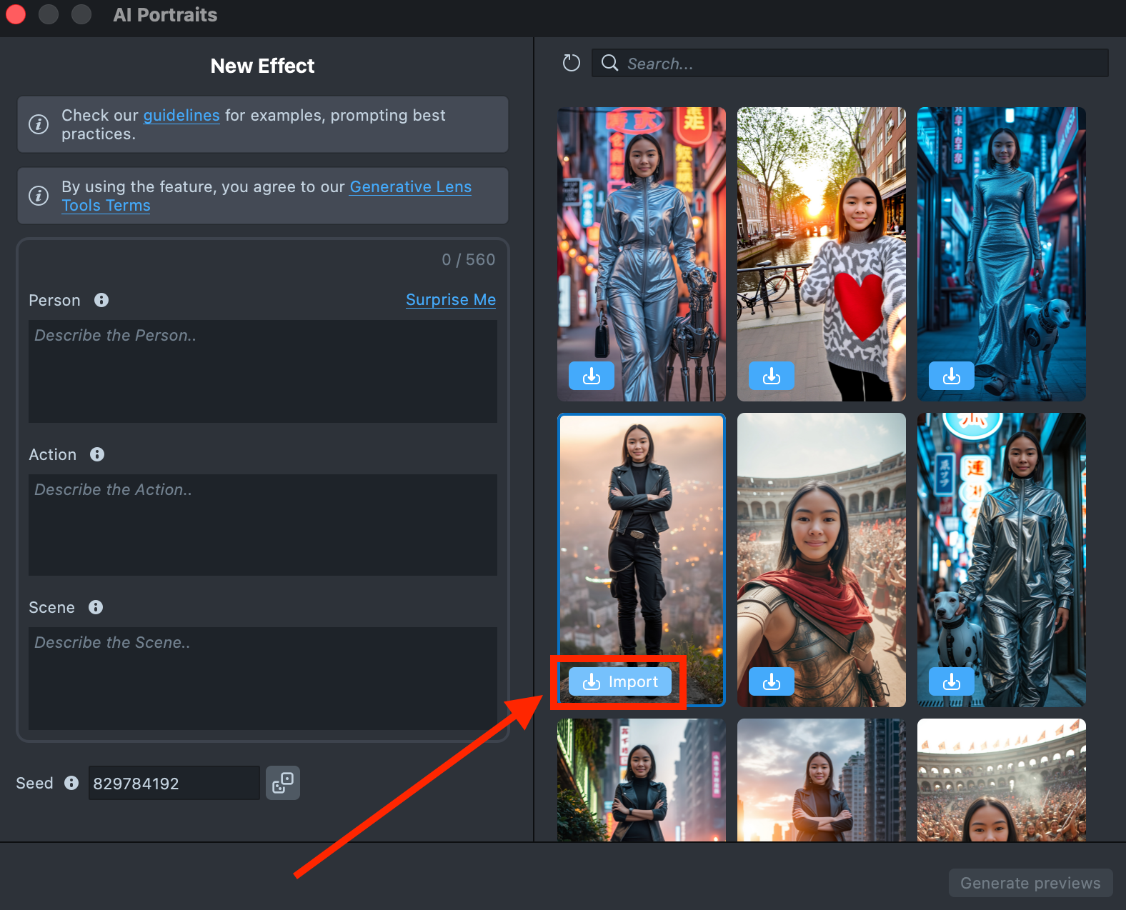 1.3. Generate an effect using text prompts, or select an existing one from the Gallery.