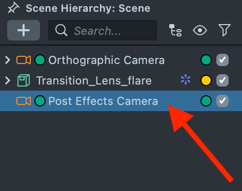 Now, link the previously created Post Effects camera by clicking the Add Value button in the Cameras with Post Effects field.