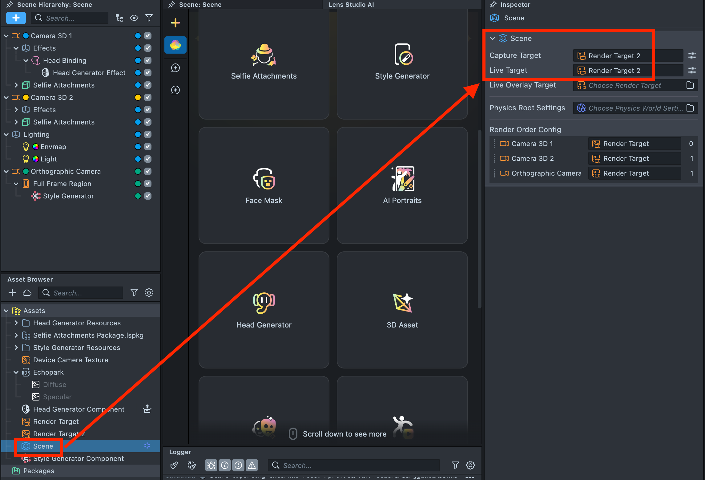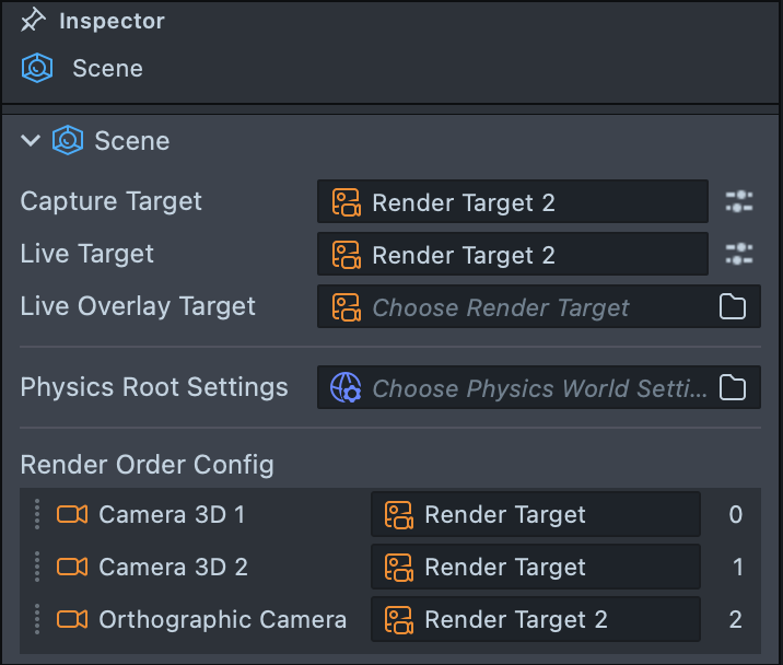 2.7. In the Scene settings, set this Render Target 2 as both the Capture Target and Live Target.