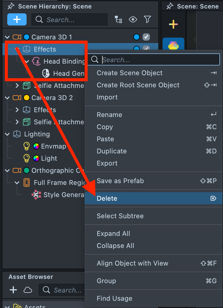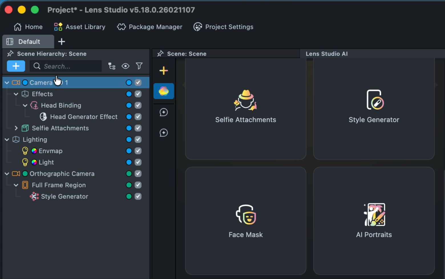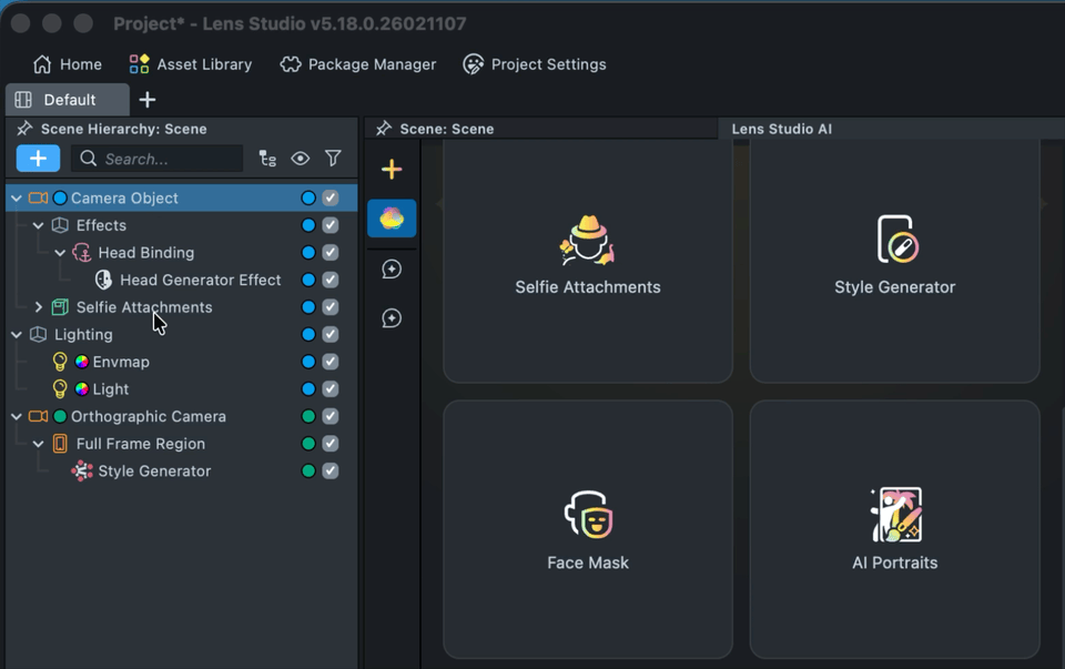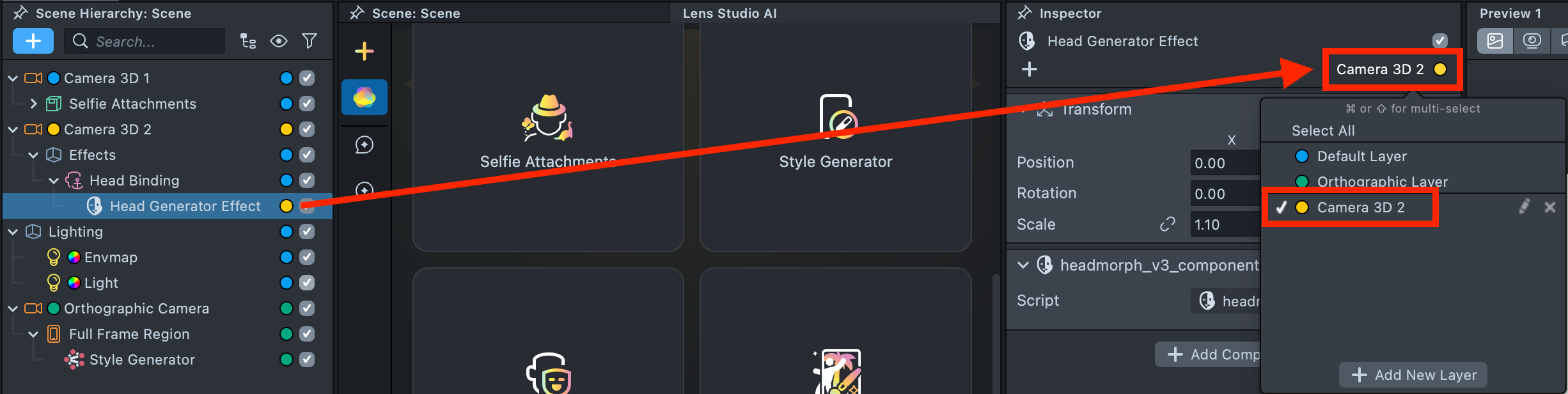 2.1. Next, separate the Selfie Attachments and Head Generator effects into two different cameras.