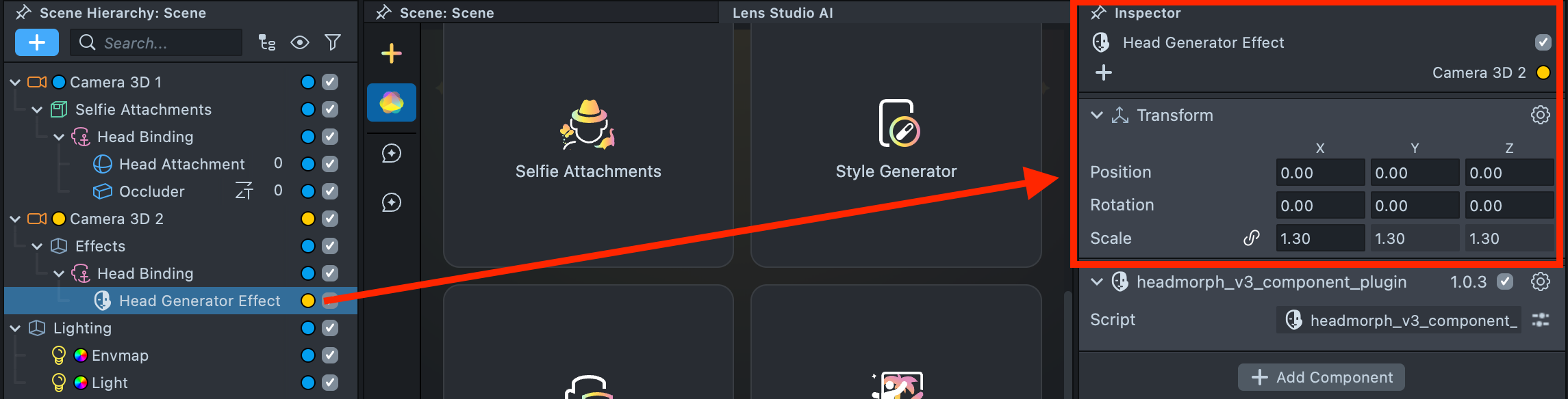 2.17. Adjust the scale of the Head Generator effect as needed to properly align it with the user’s head and your overall Lens design.