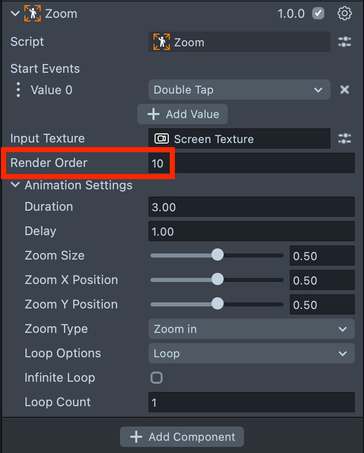 3.3. Set its Render Order to 10 to ensure it renders above the other effects.