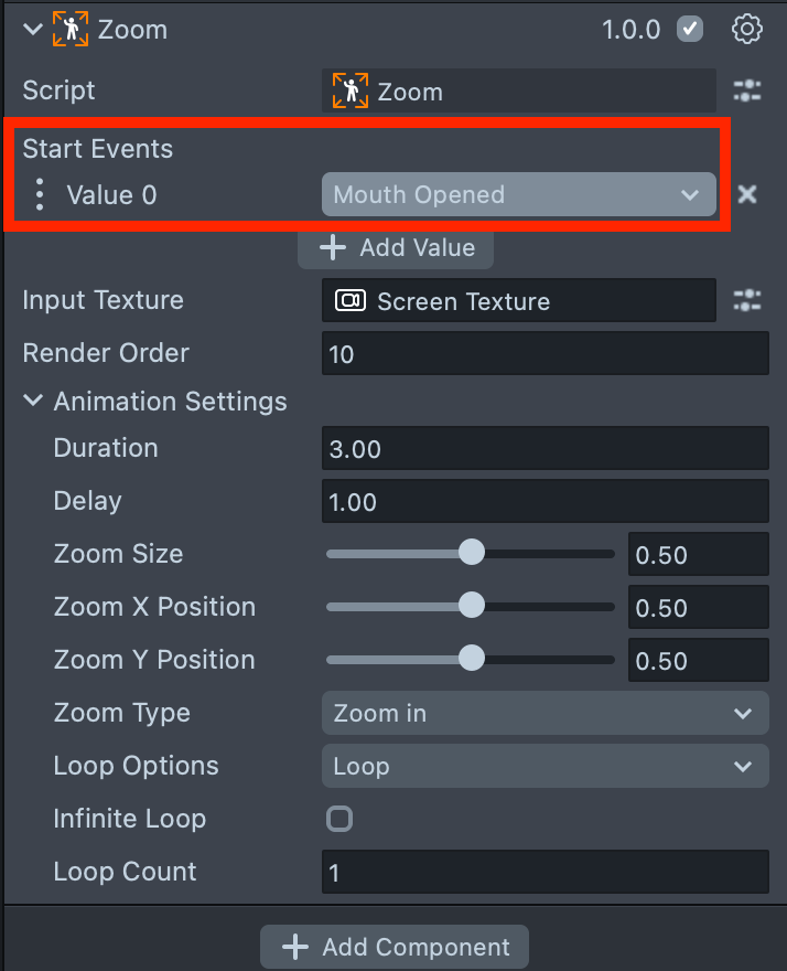 3.5. Set Start Events to Mouth Opened.