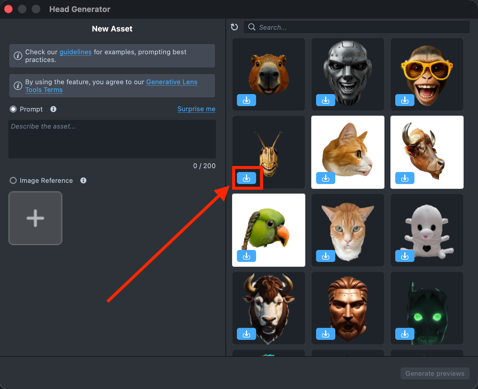 1.5. In the GenAI Home Page, find the Head Generator and import a generated effect into your project.