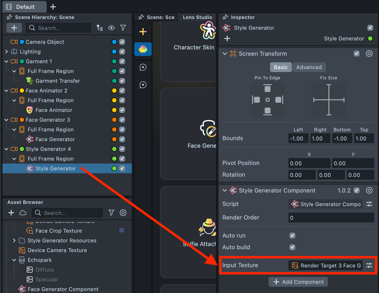 2.17. Open the Style Generator component and set Render Target 3 Face Generator as its Input Texture.