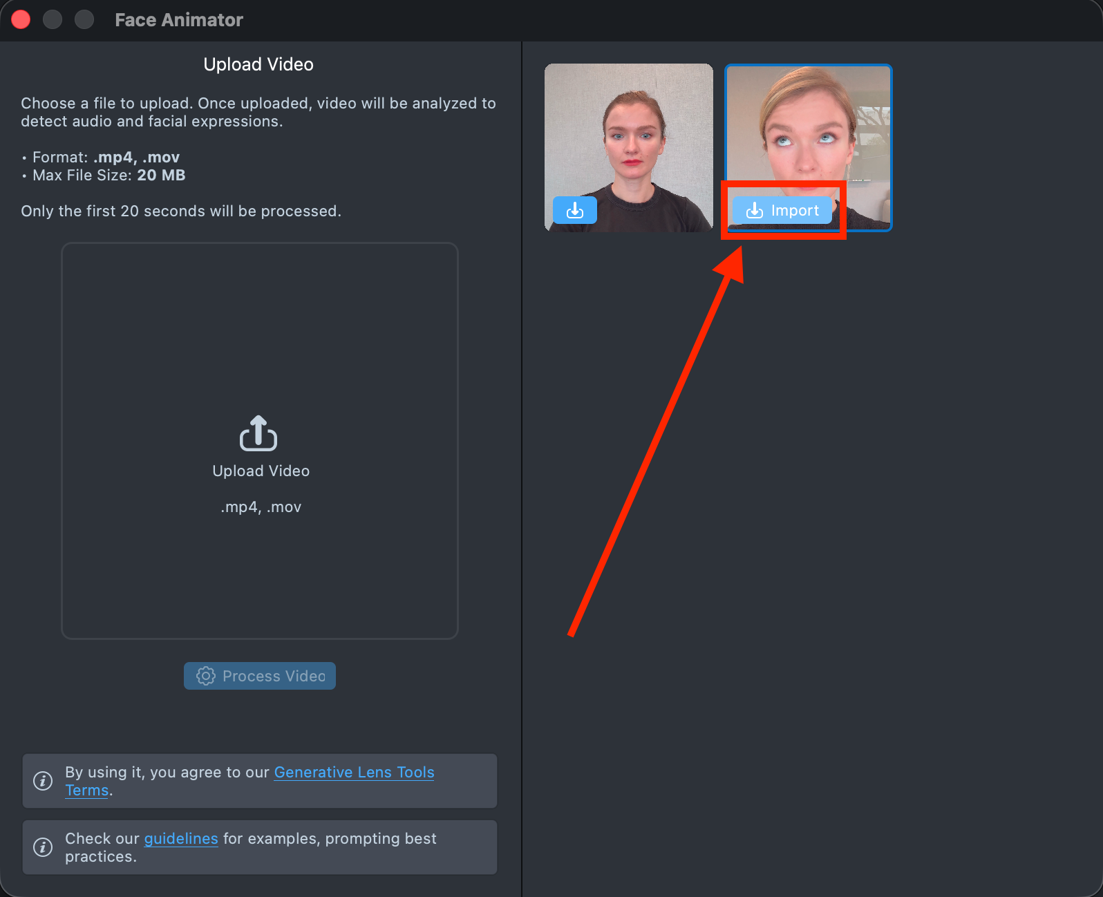1.4. In the GenAI Home Page, find the Face Animator and import a generated effect into your project.