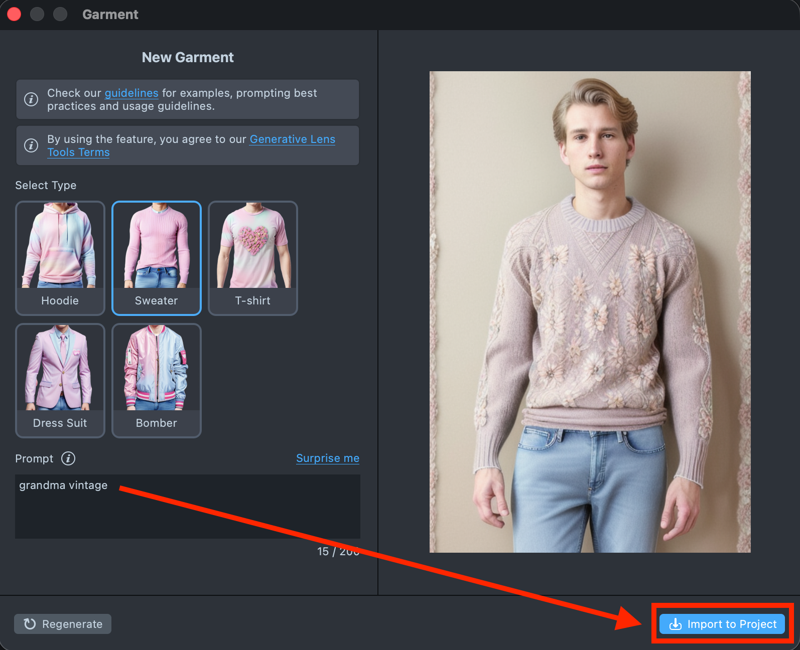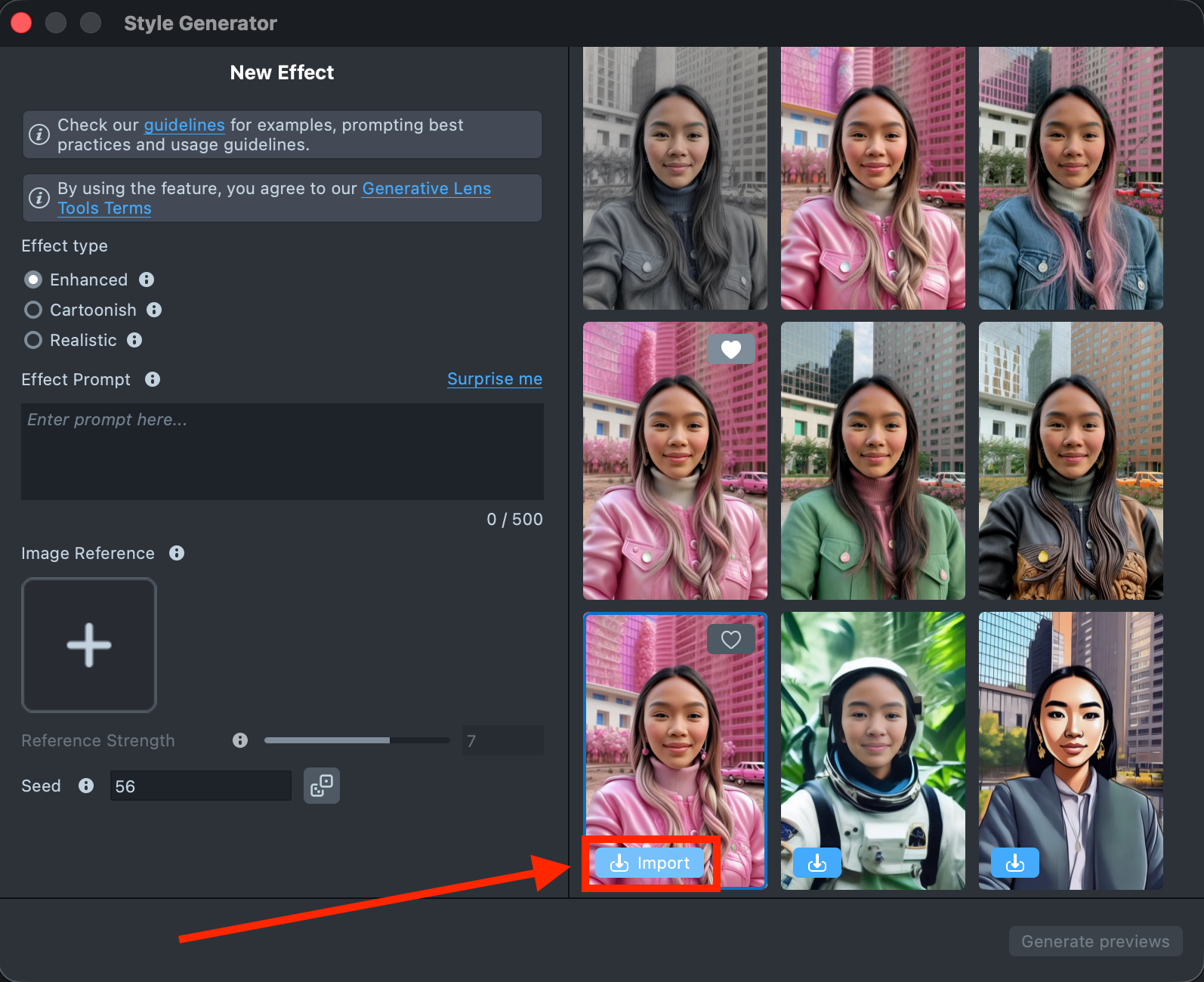 1.6. In the GenAI Home Page, find the Style Generator and import a generated effect into your project.