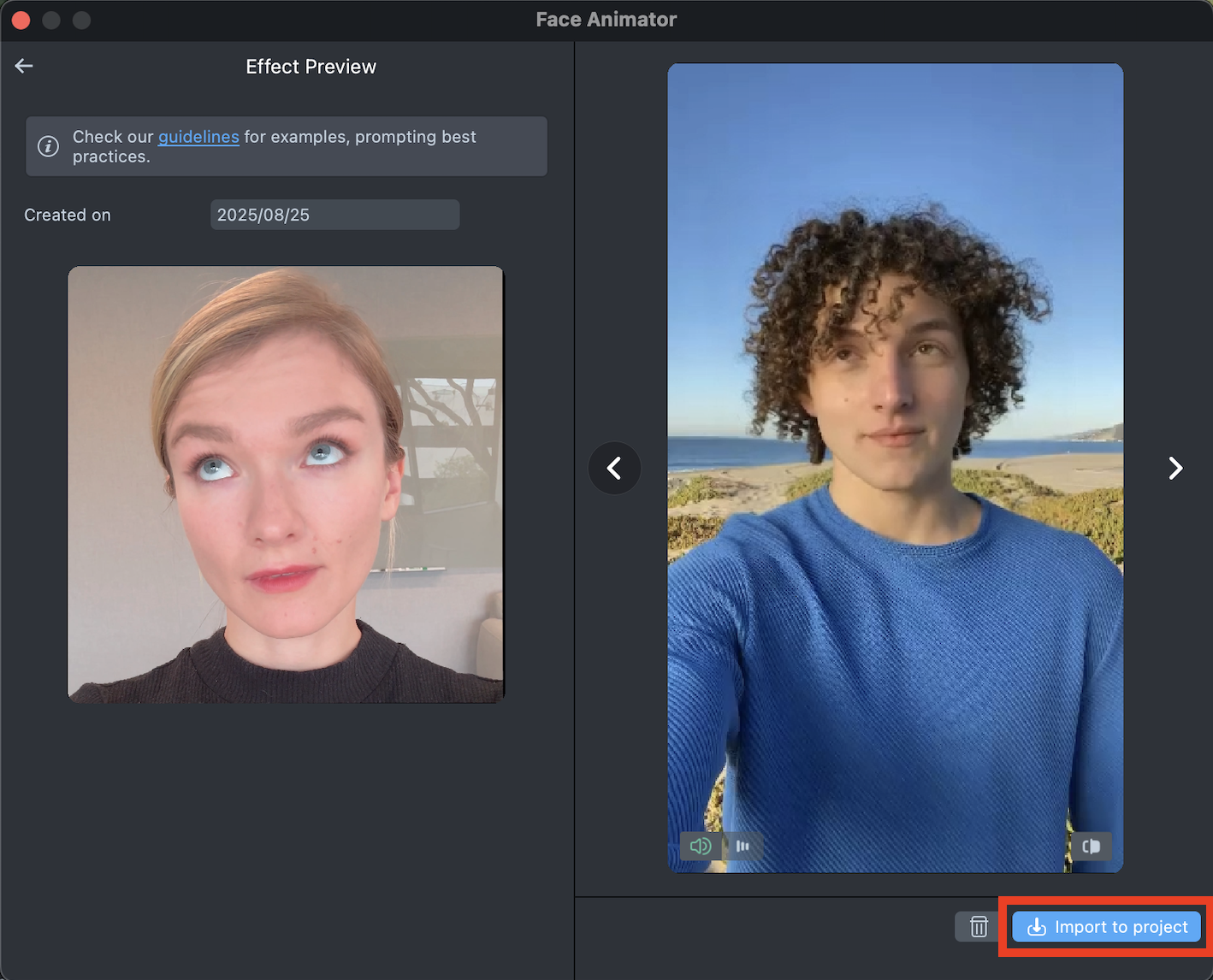 In the pop-up window, you can choose to import the effect with the original audio from your uploaded video or skip it.