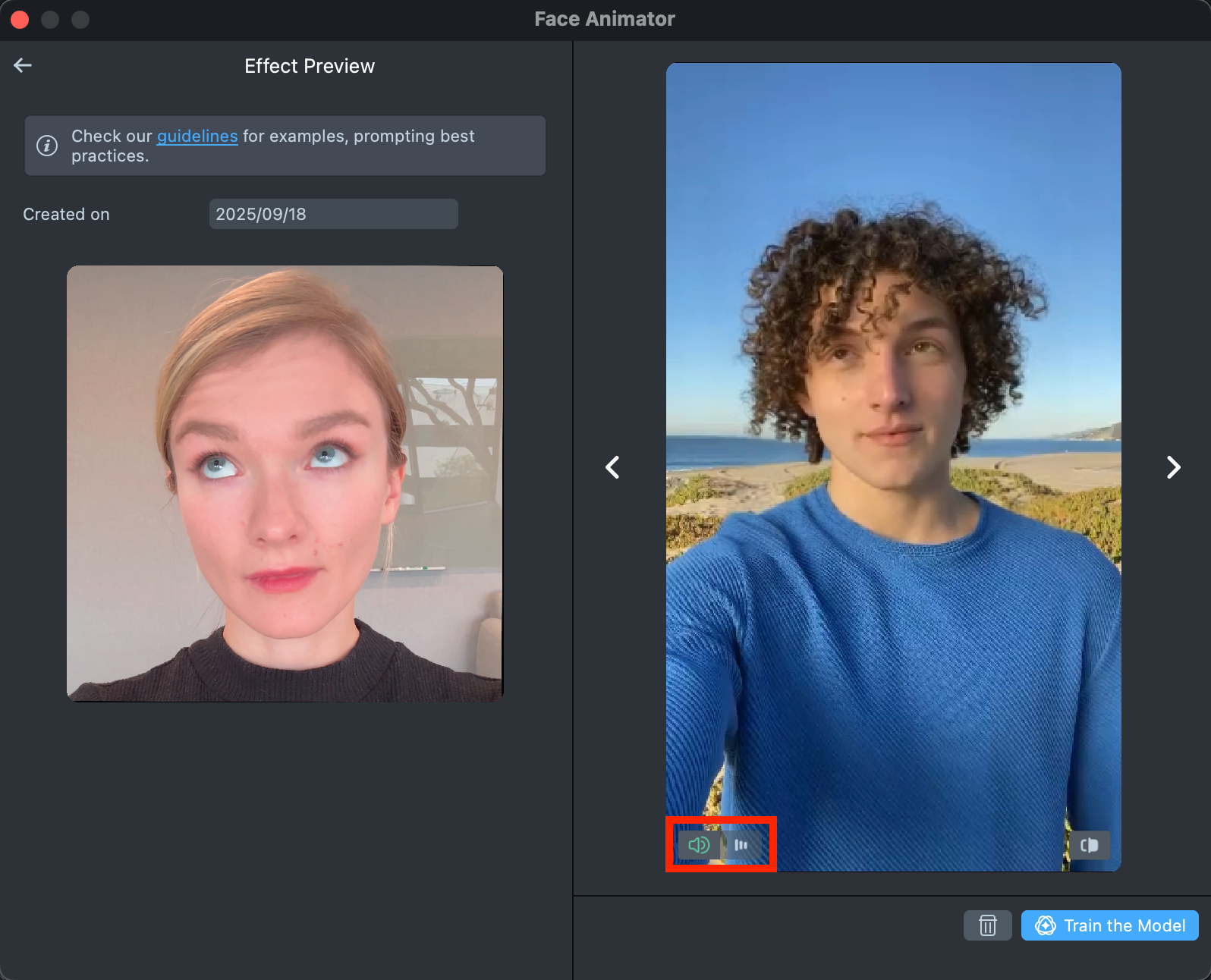 Once the preview has been generated, you can click its tile in the Gallery to view it. You will hear the original audio from your uploaded video, but you can mute it by clicking the button in the bottom-left corner.