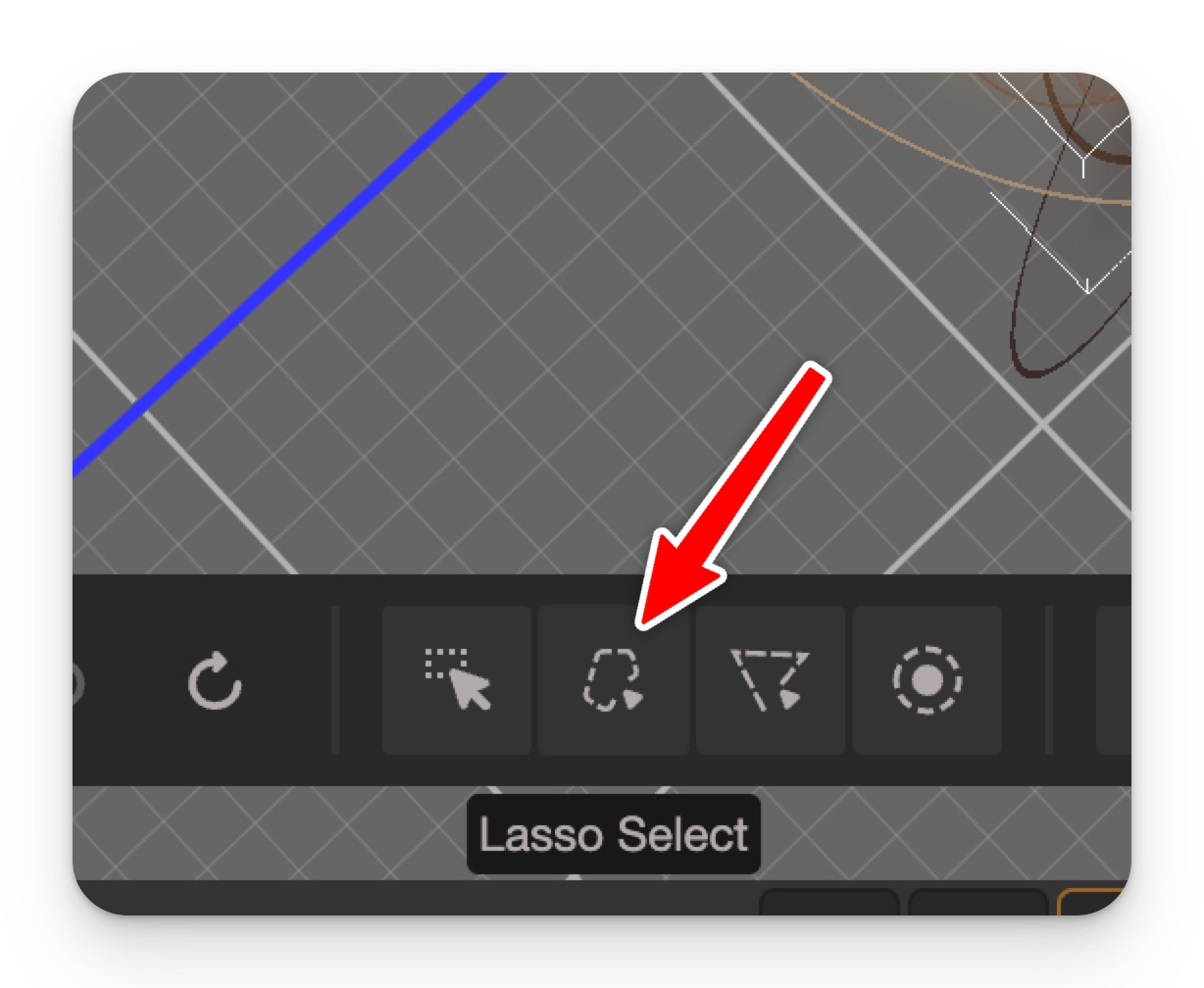 Lasso Select(or another selection tool). Select the splats to delete. Tip: rotate the asset for better visibility.