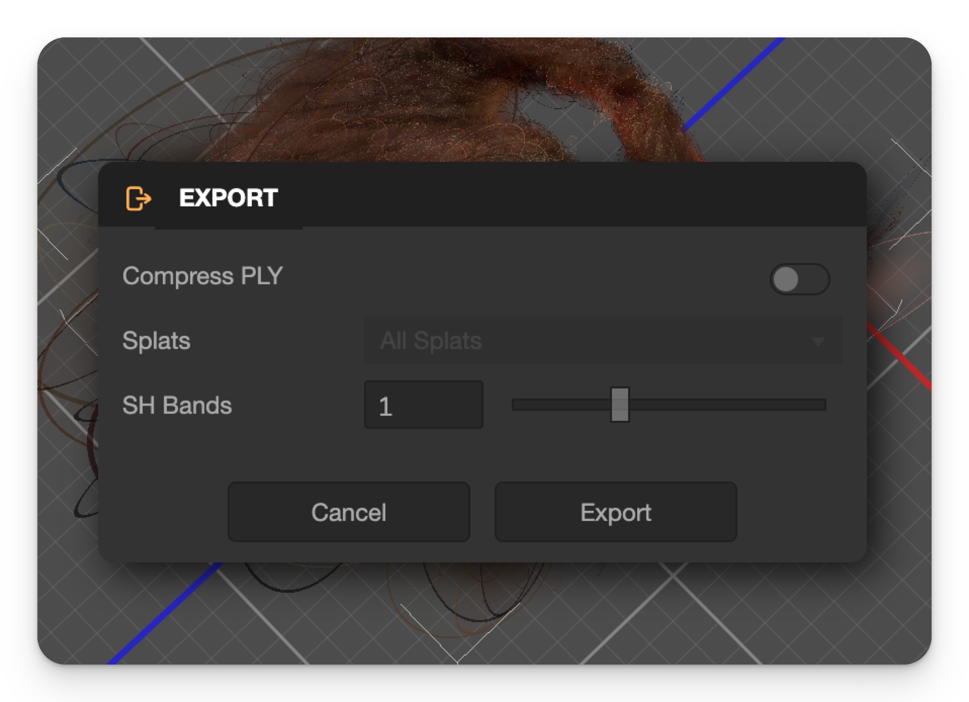 <Backspace>orDeleteto remove selected splats. Repeat until you're happy with the result. -