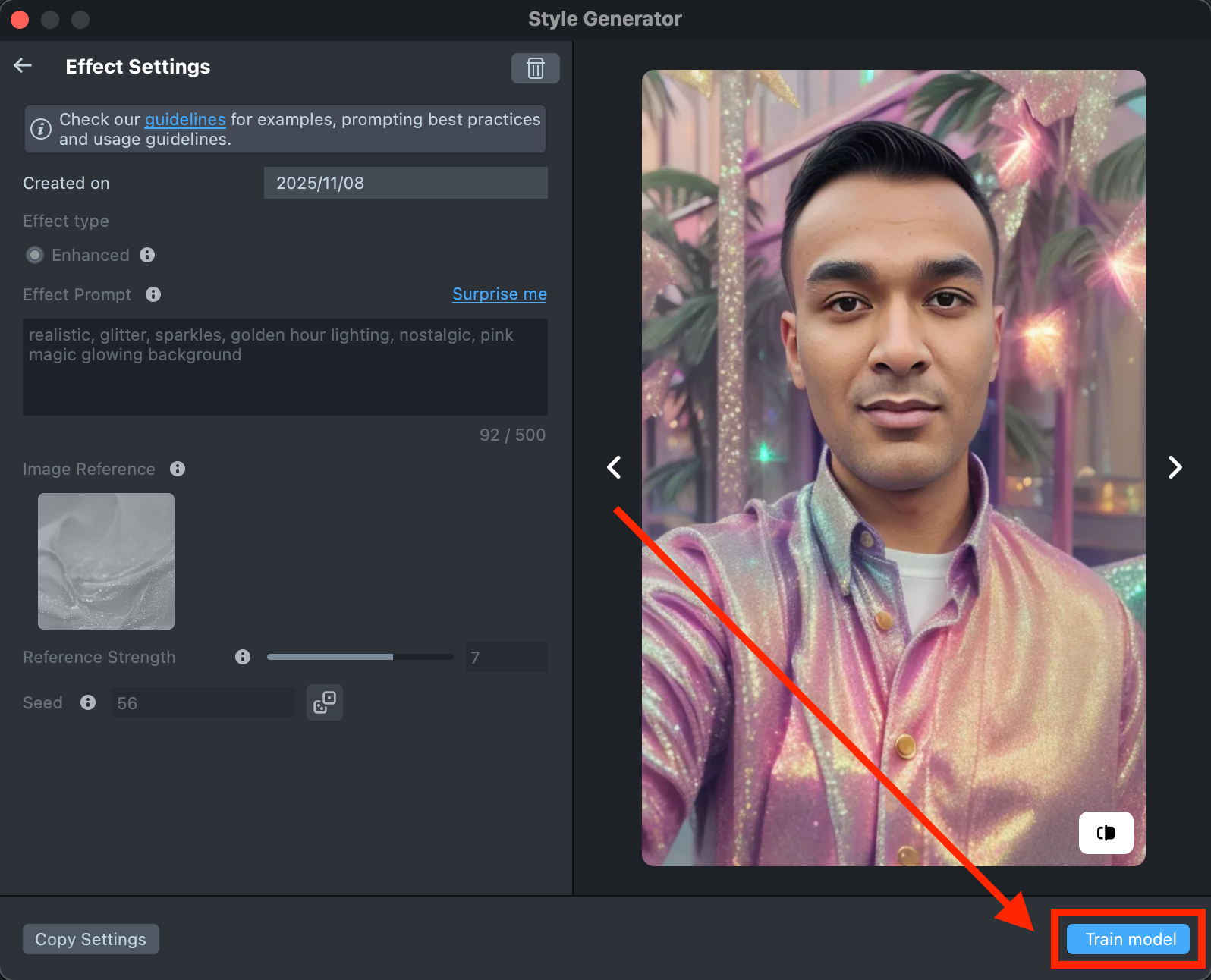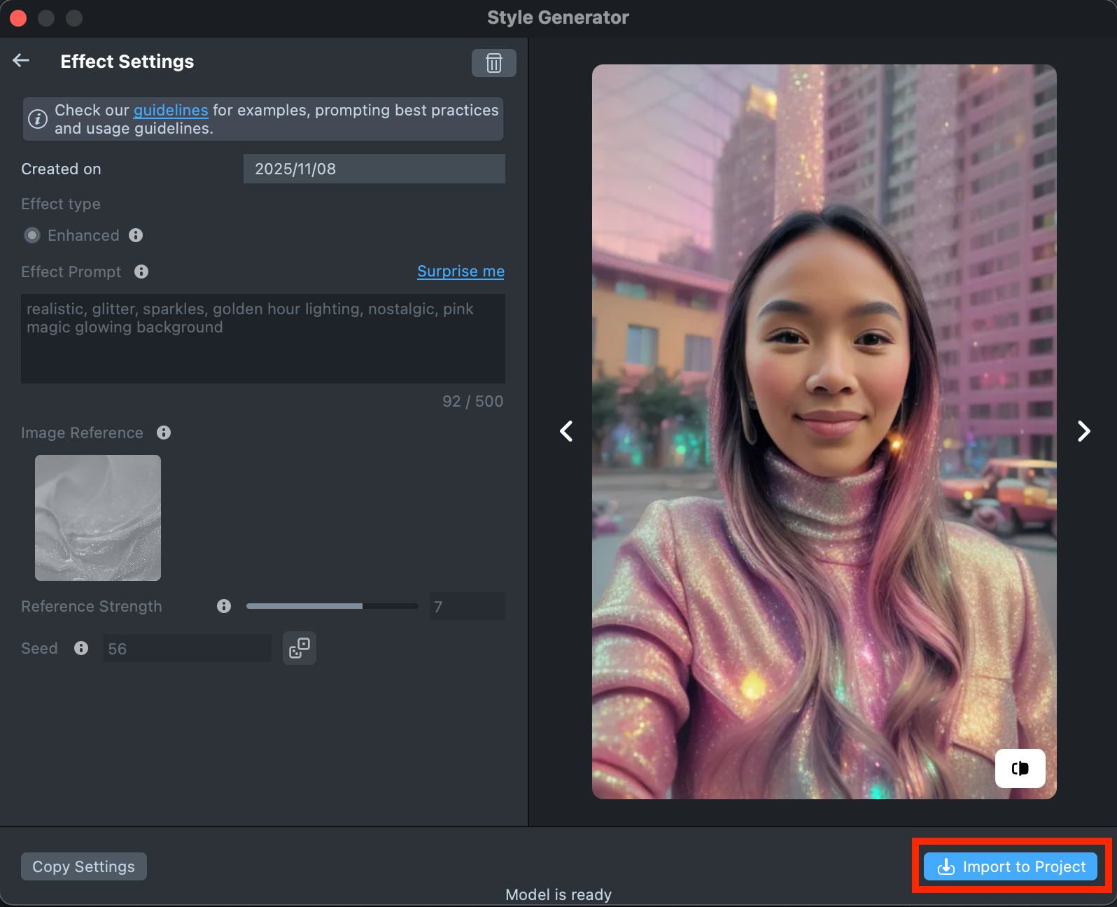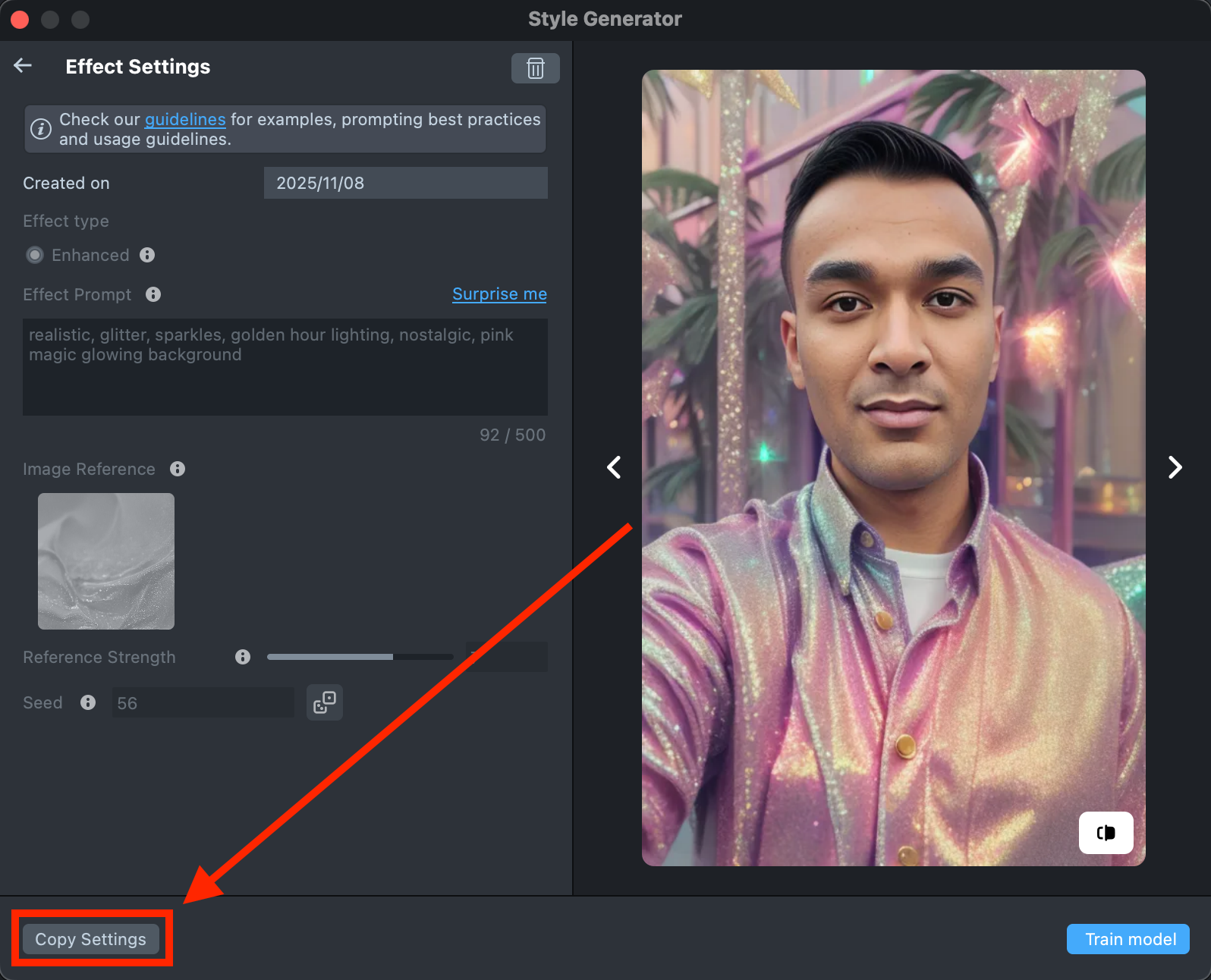 Copy Settingsto adjust your prompts or seed.